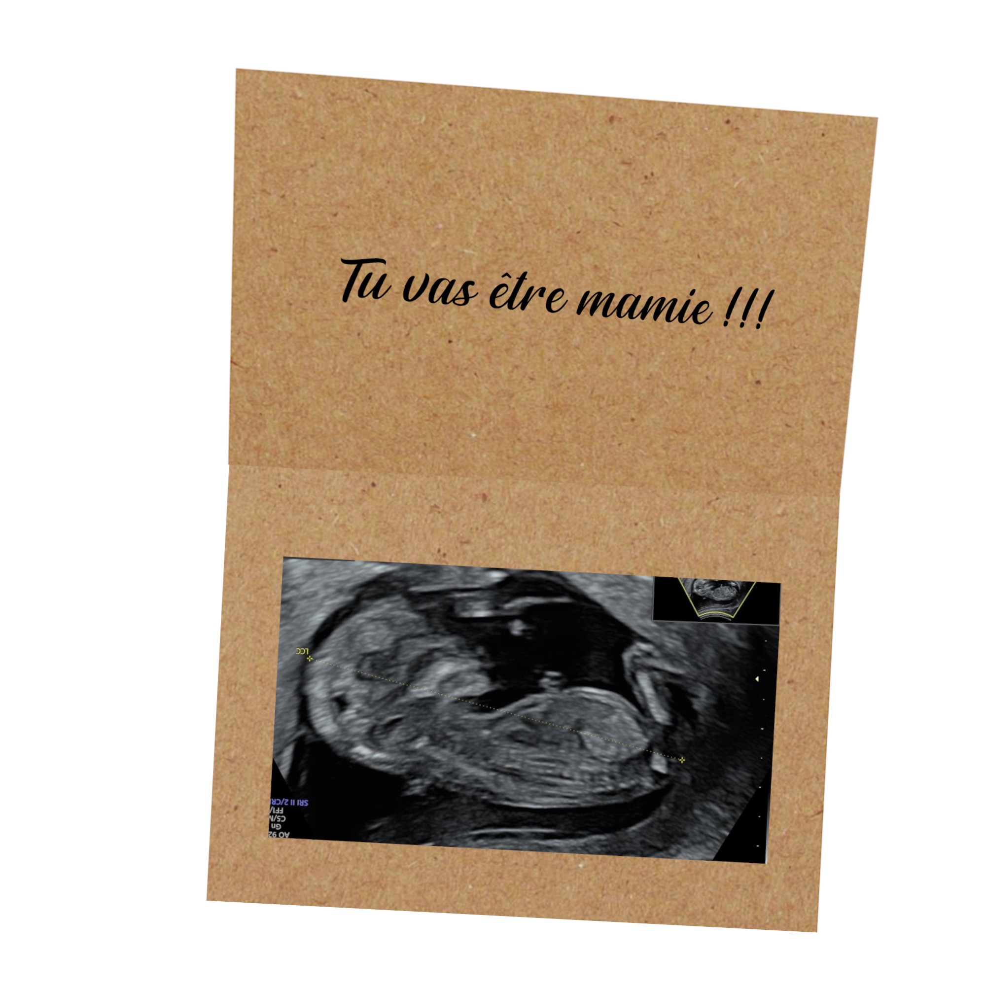 Carte avec message personnalisé et emplacement pour y coller votre échographie