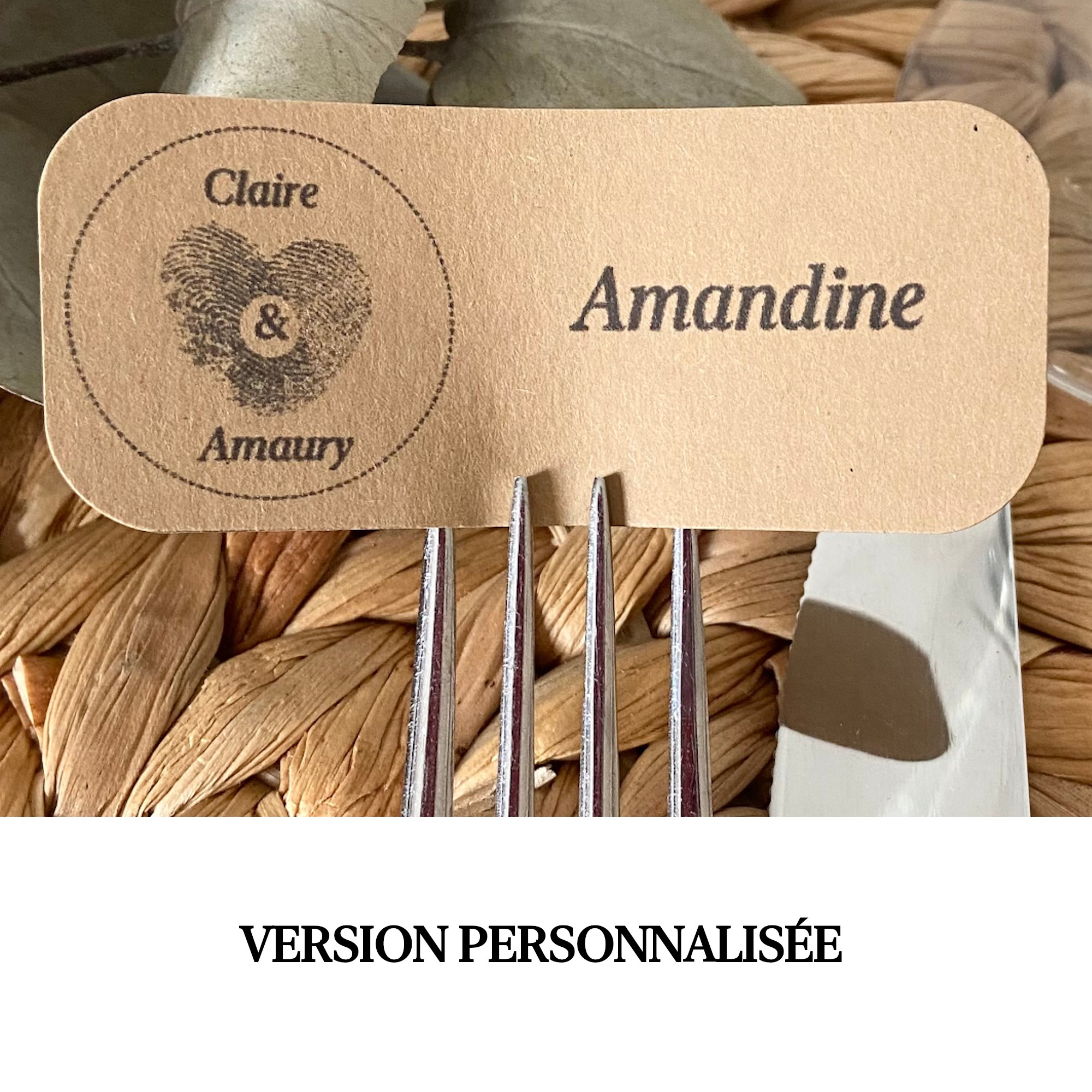 Qualité durable : Imprimés sur un papier kraft de haute qualité (250g) ou blanc mat de belle qualité (250g), nos marque-places offrent une excellente tenue sur vos tables de réception.