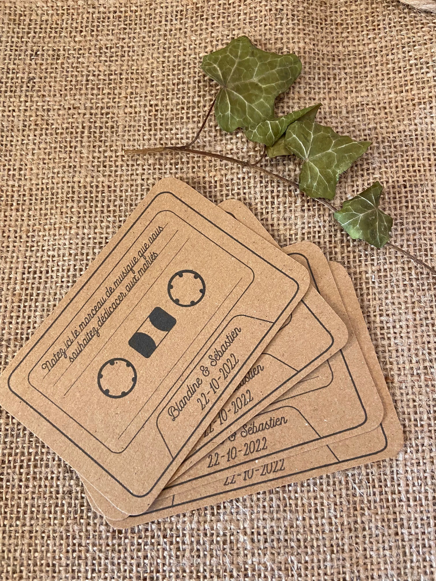 CARTES DEDICACES CHANSONS - ANIMATION MARIAGE - INSPIRE LE DJ - STYLE K7 VINTAGE - LOT DE 10