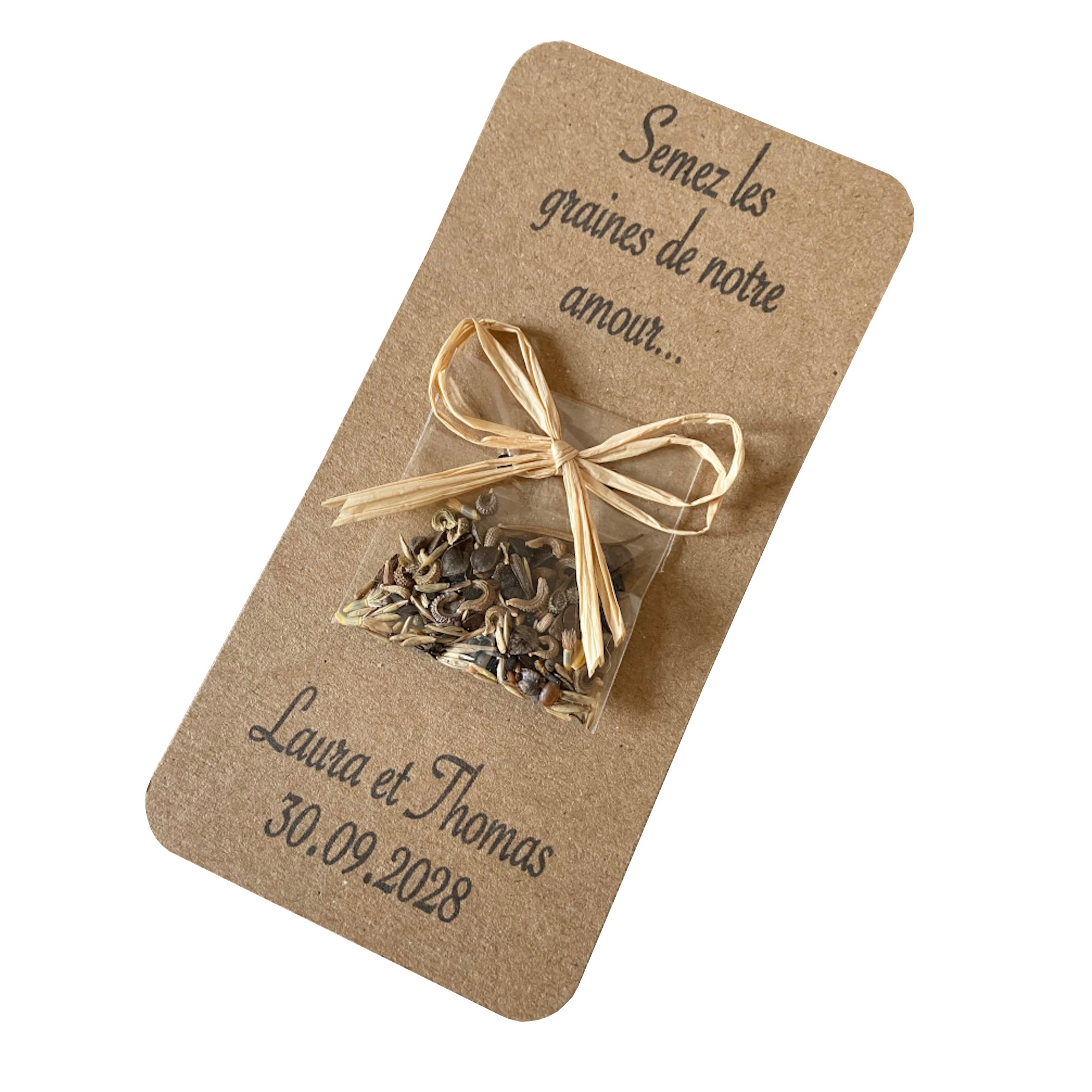 Carte avec un sachet contenant un mélange de graines de fleurs des champs que vos invités pourront semez.