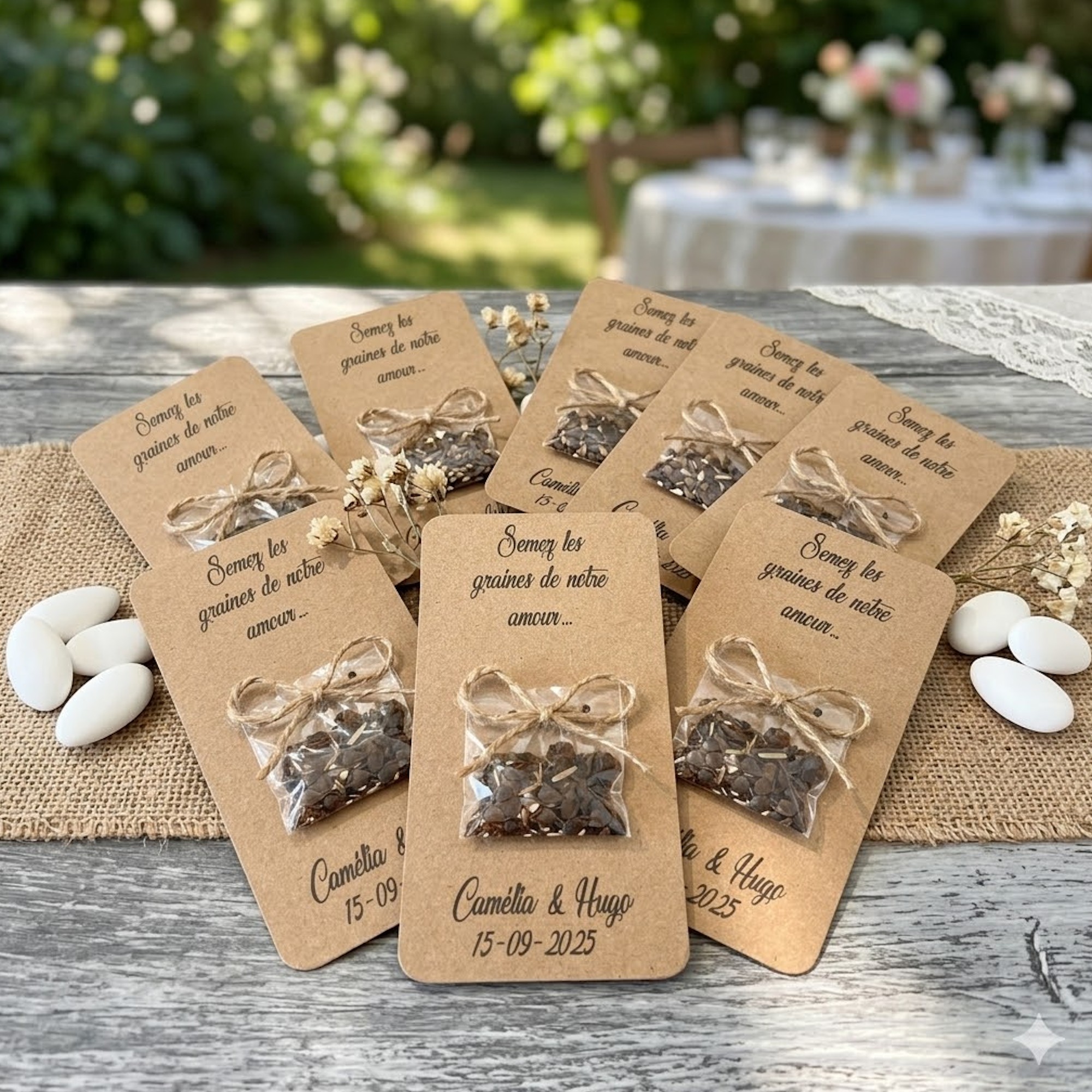 GRAINES À SEMER - CADEAUX INVITÉS PERSONNALISÉS MARIAGE CHAMPÊTRE - KRAFT et CORDE NATURELLE