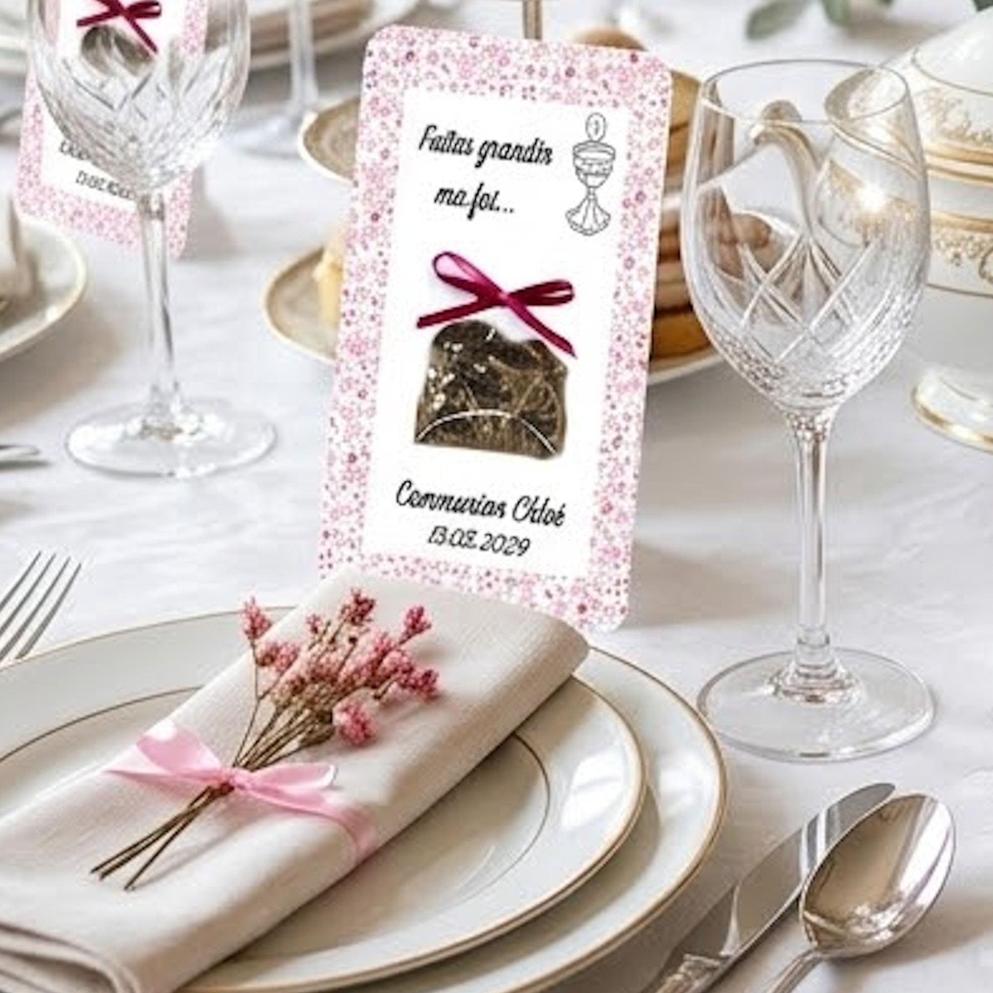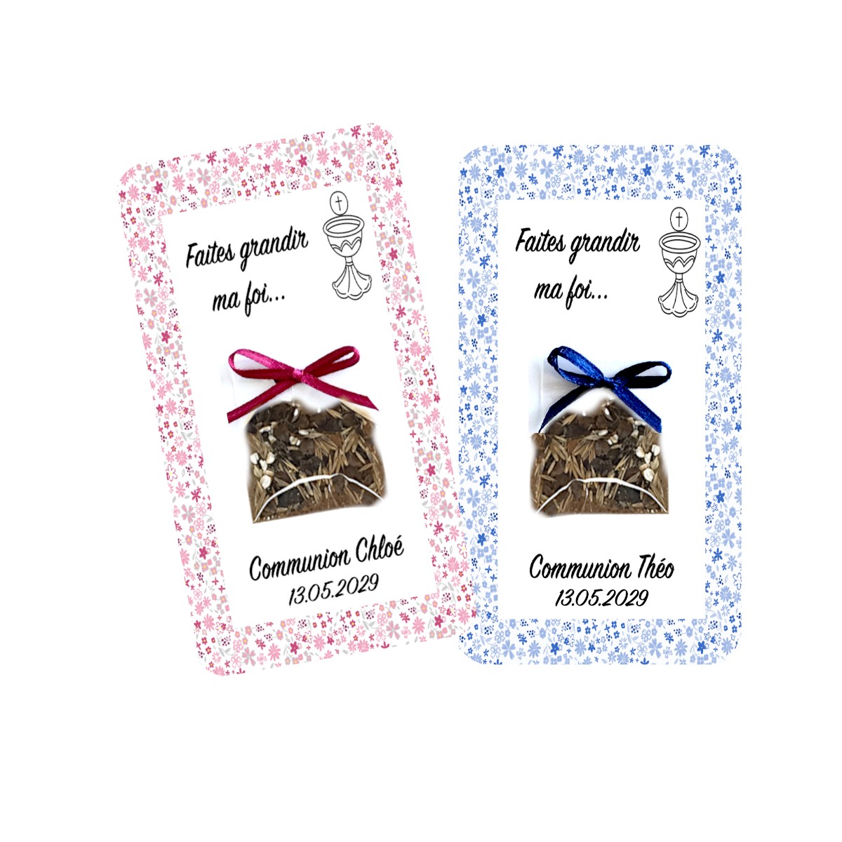 GRAINES À SEMER - CADEAUX INVITÉS PERSONNALISÉS POUR BAPTÊME OU COMMUNION - MOTIF LIBERTY ROSE OU BLEU