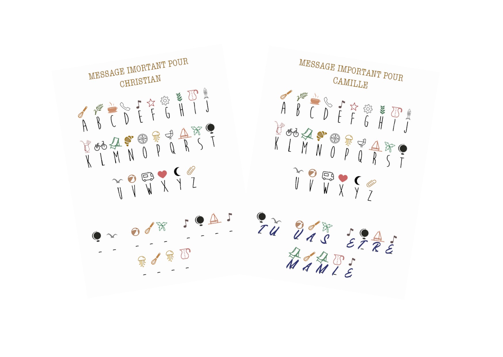 Carte codée personnalisée avec le prénom de la personne à qui vous offrez cette carte et qui contient votre message codé.