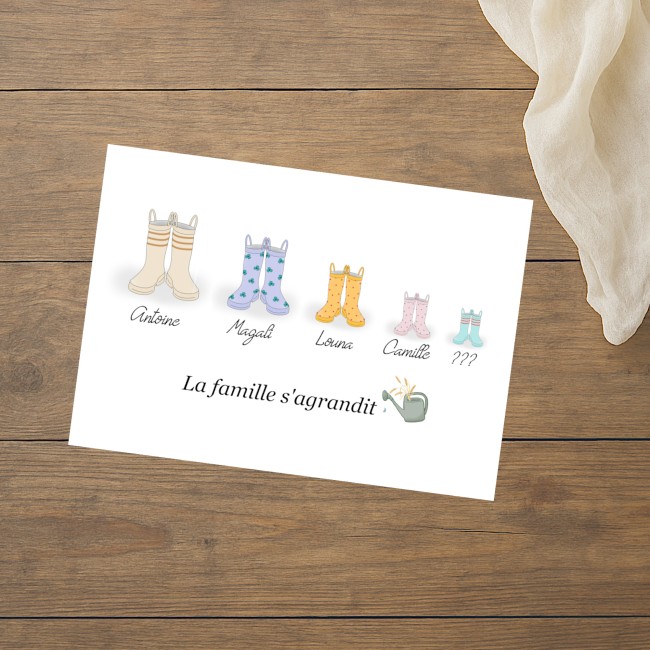 CARTE ANNONCE GROSSESSE PERSONNALISÉE - MOTIFS BOTTES DE PLUIE