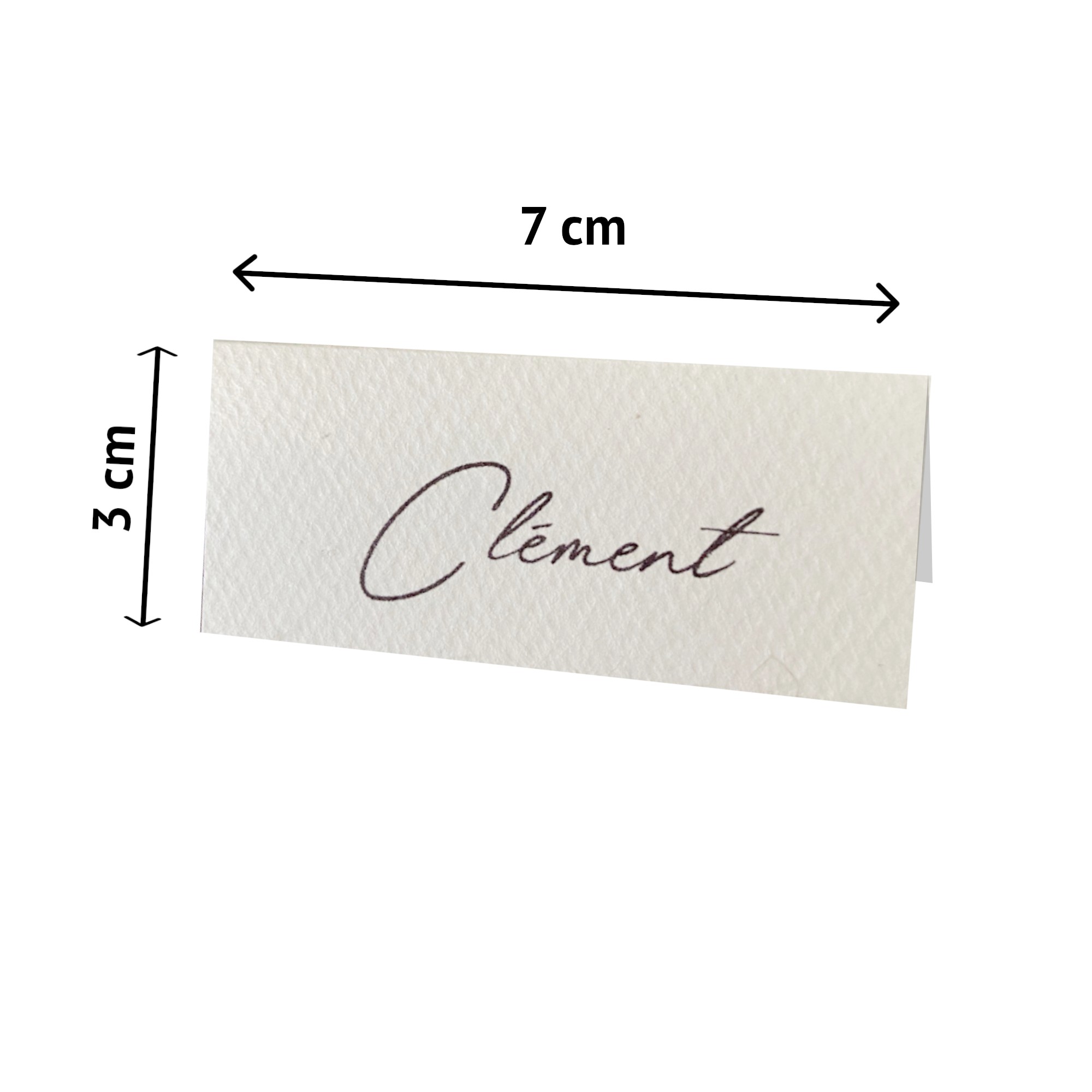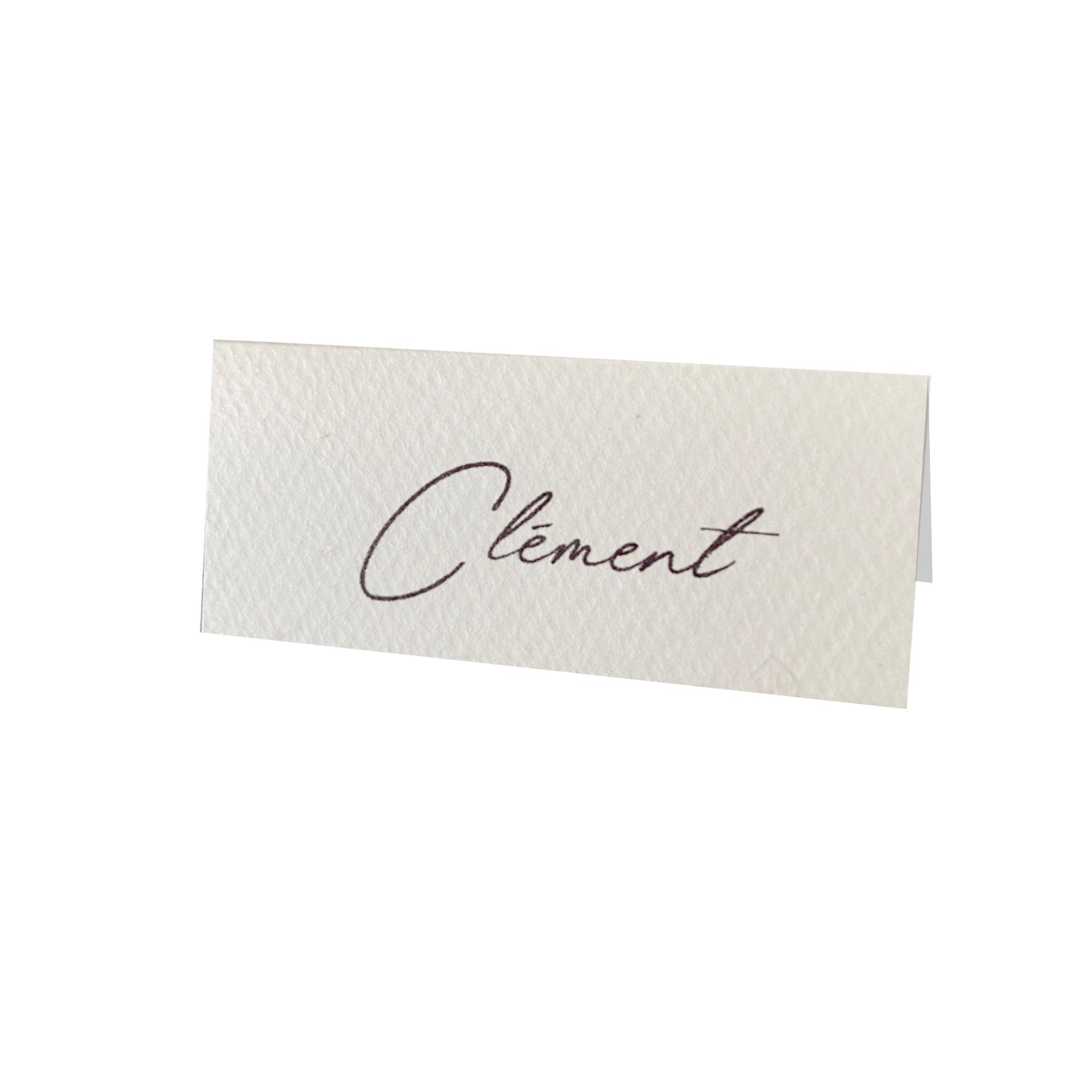 Apportez une touche de distinction à vos tables avec nos marque-places artisanaux, alliant la beauté d'une calligraphie raffinée à la texture noble du papier texturé.