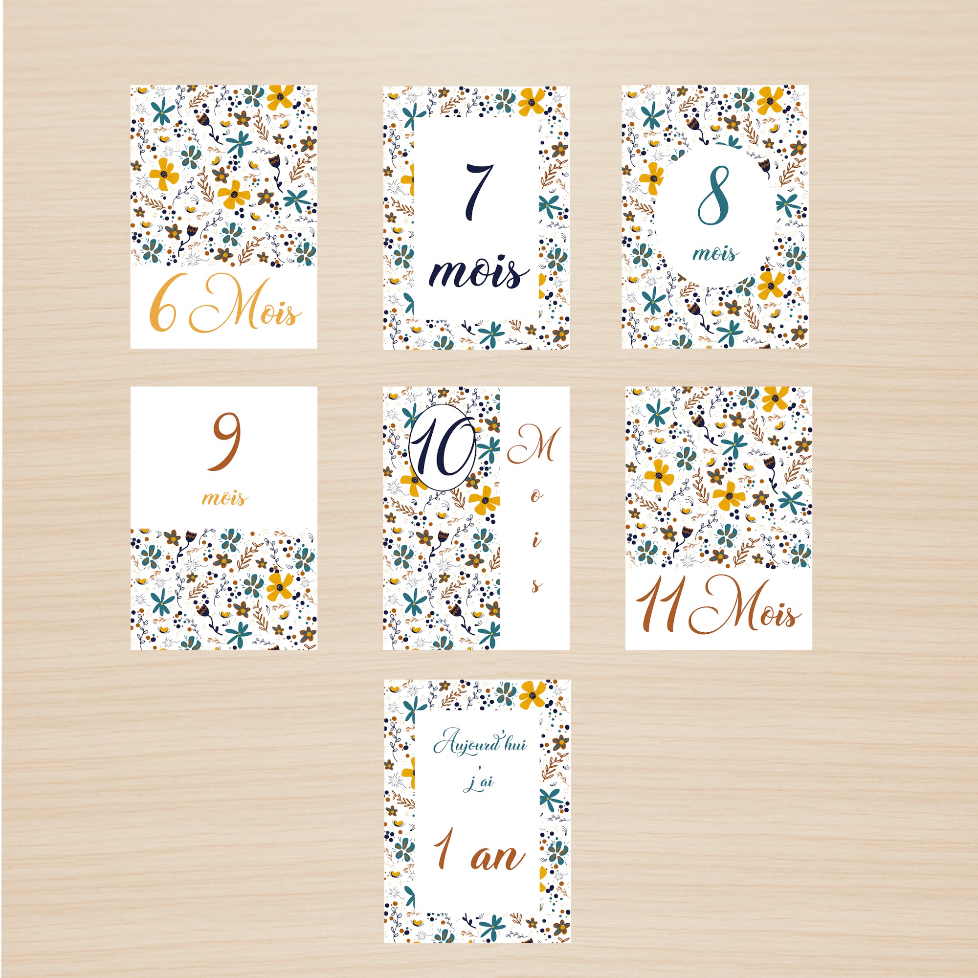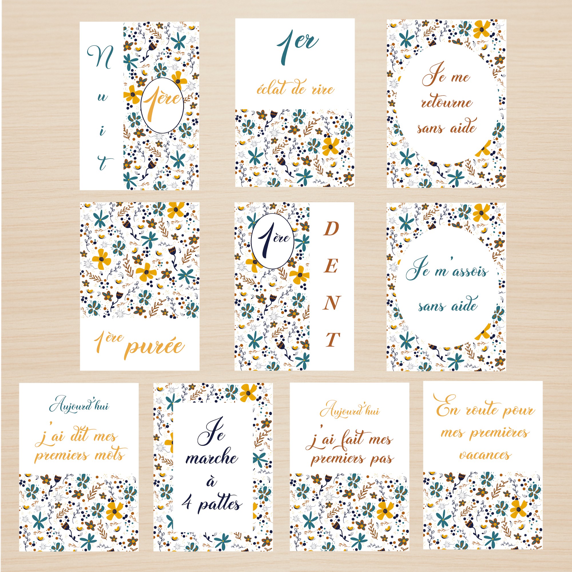 CARTES ETAPES POUR SOUVENIR PHOTO DE BÉBÉ - PREMIÈRE ANNÉE ou PREMIÈRES FOIS DE BÉBÉ