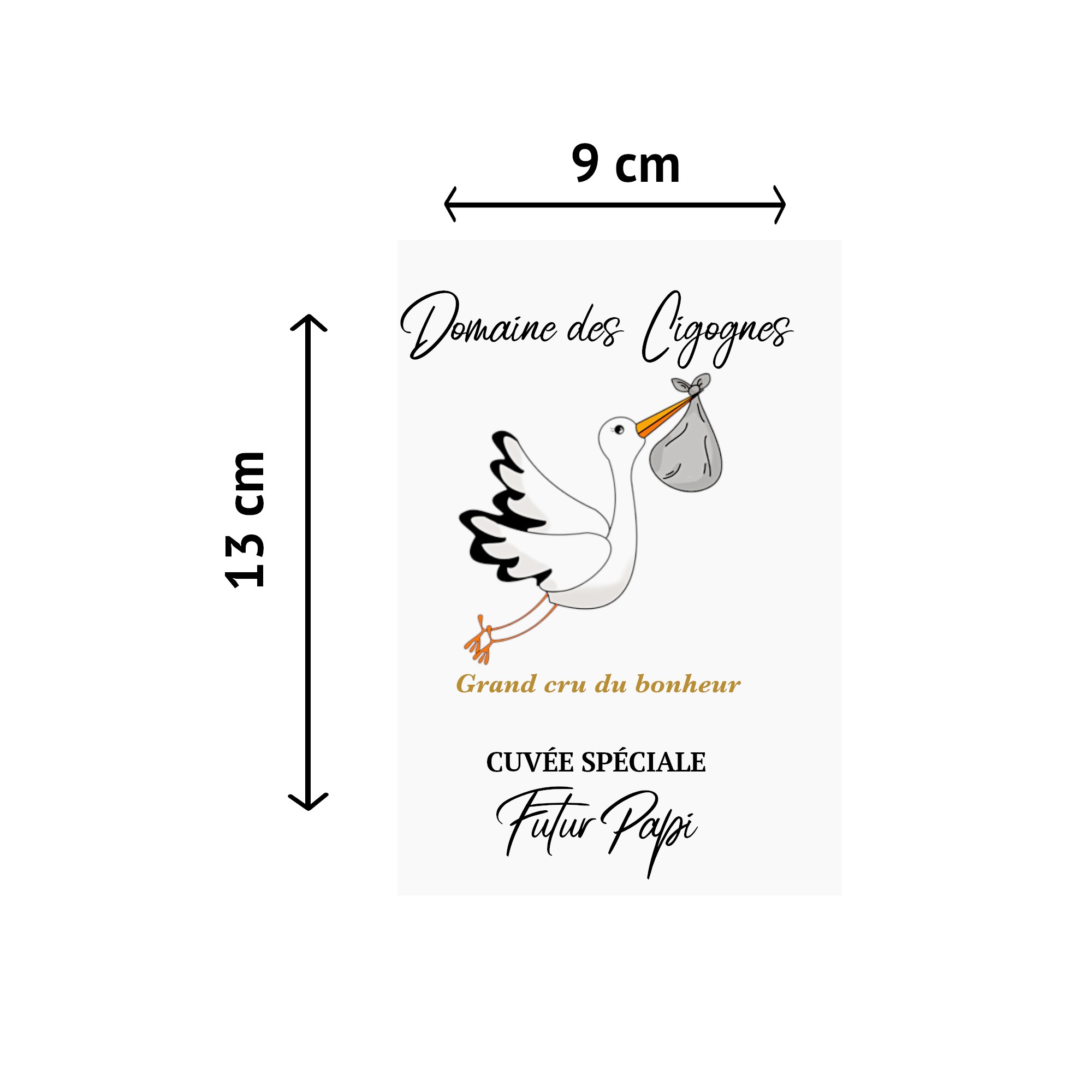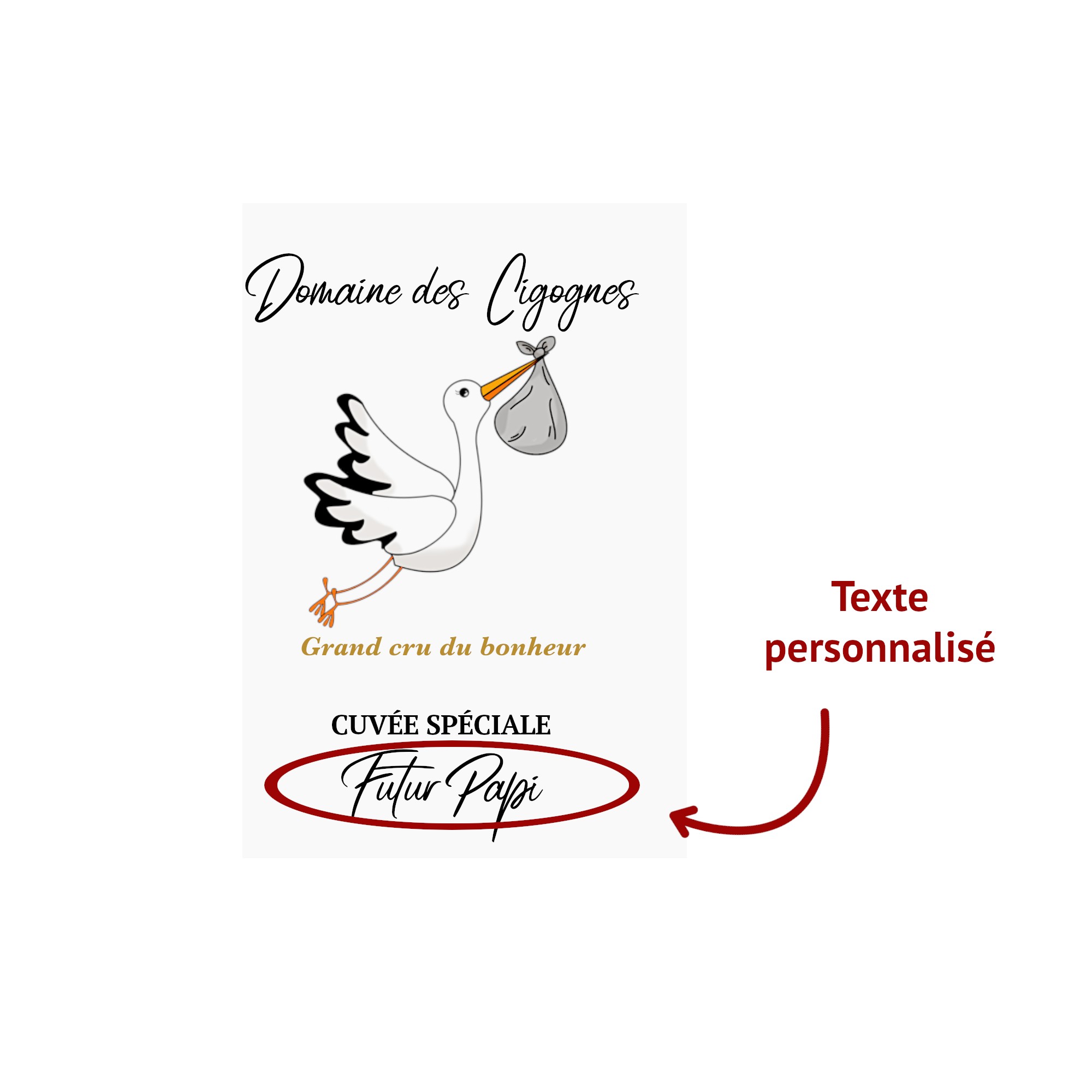 ÉTIQUETTE POUR BOUTEILLE PERSONNALISÉE - ANNONCE GROSSESSE OU DEMANDE DE PARRAIN / MARRIANE - MOTIF CIGOGNE