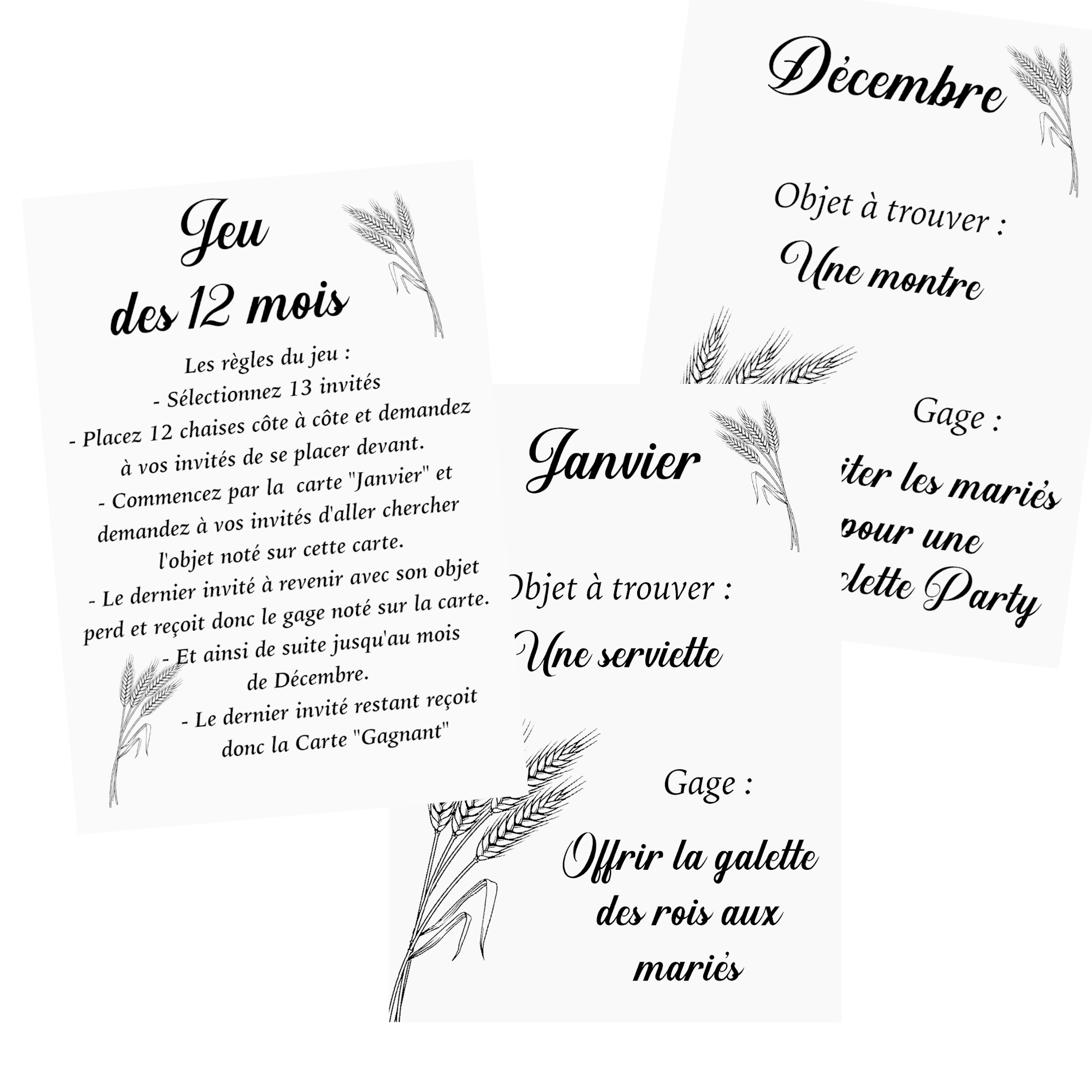 JEU DES 12 MOIS - ANIMATION MARIAGE - MODELE EPI DE BLE