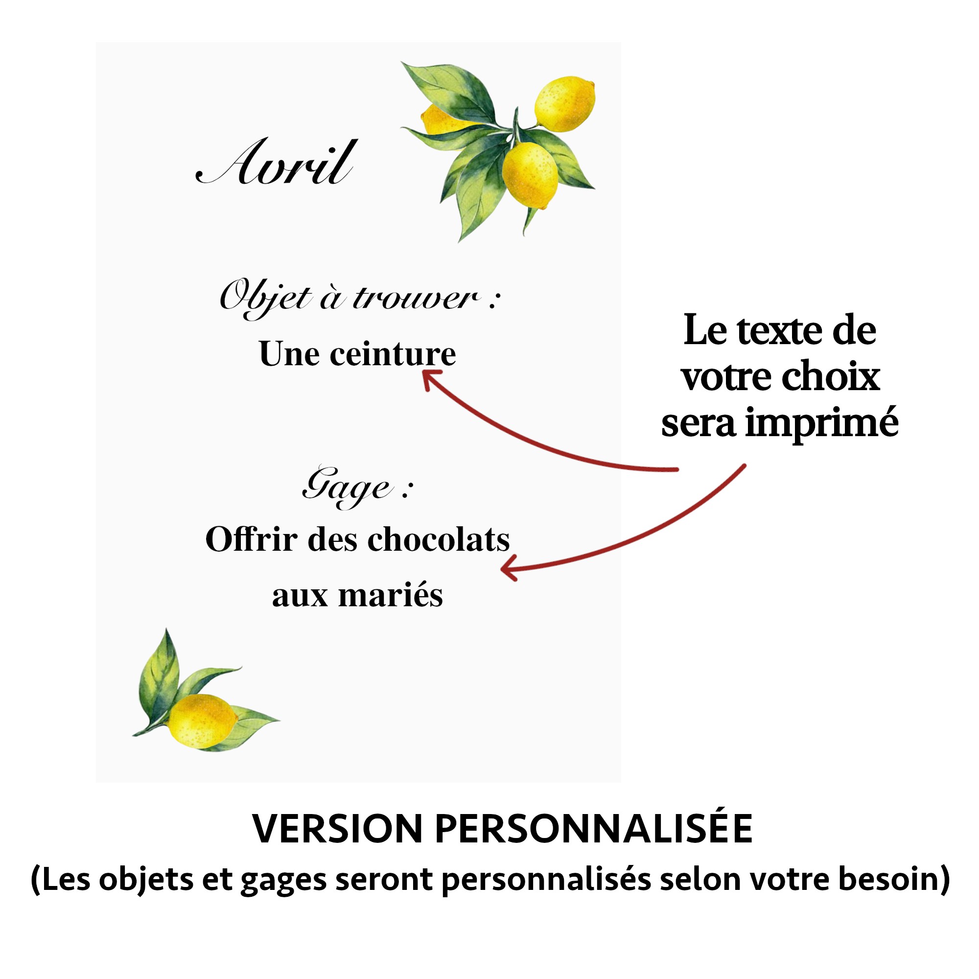 JEU DES 12 MOIS - ANIMATION GAGES MARIAGE -