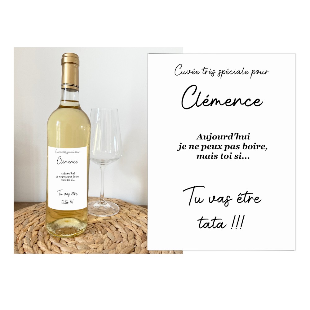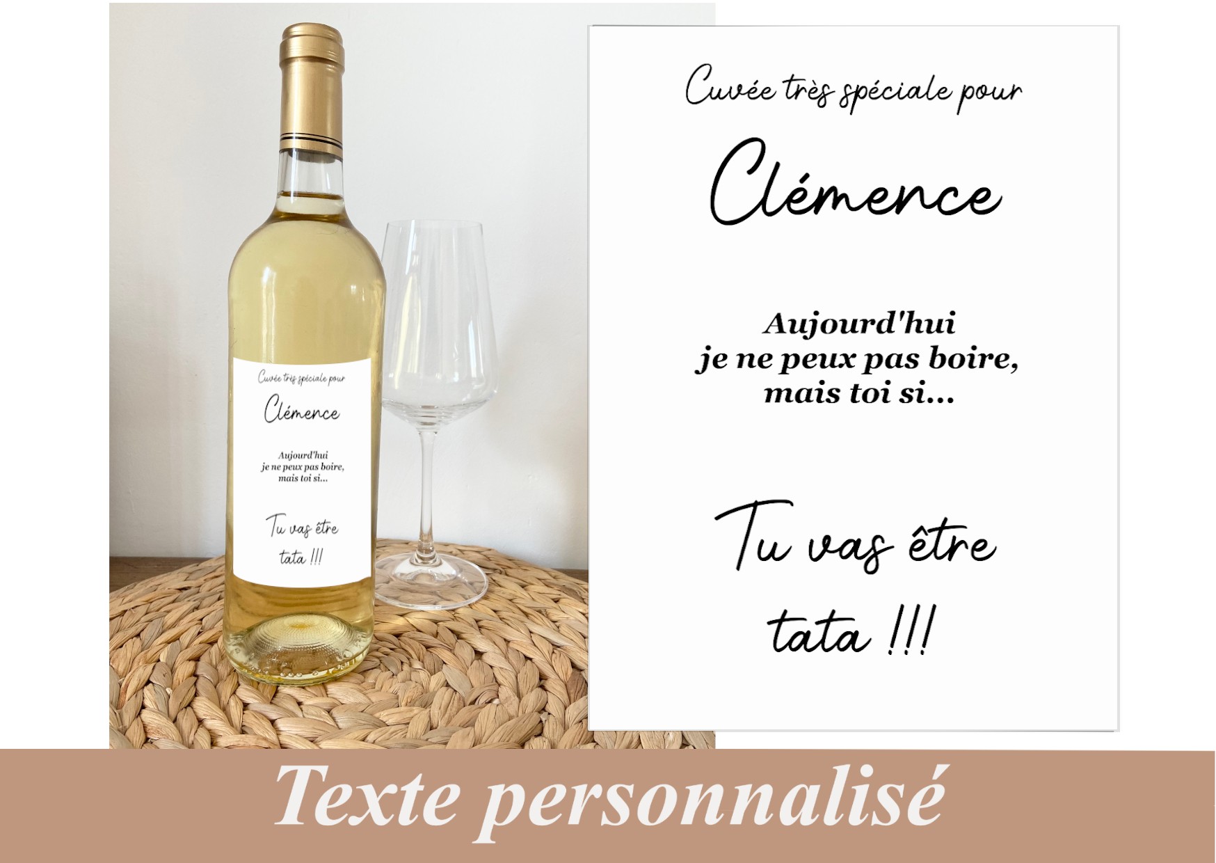- La phrase du bas de l'étiquette (ex : Tu vas être tata !!!)