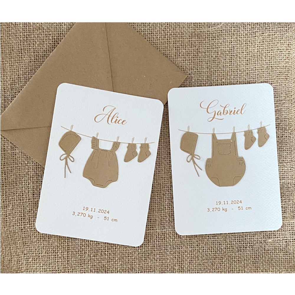 FAIRE PART DE NAISSANCE - MOTIF VINTAGE ENFANTIN EN RELIEF