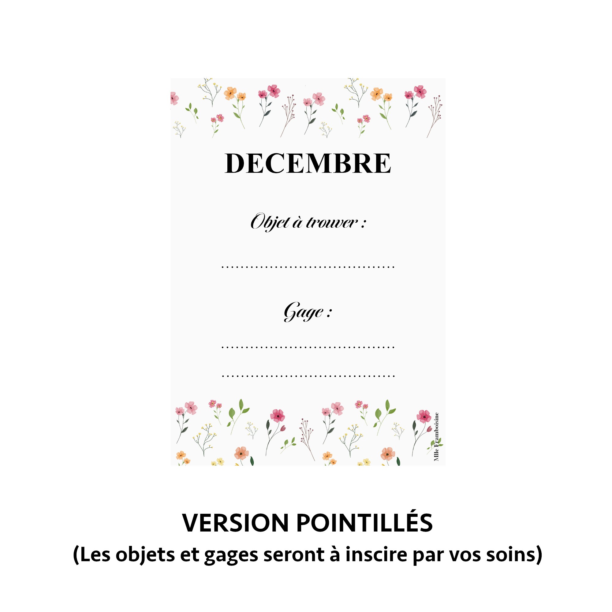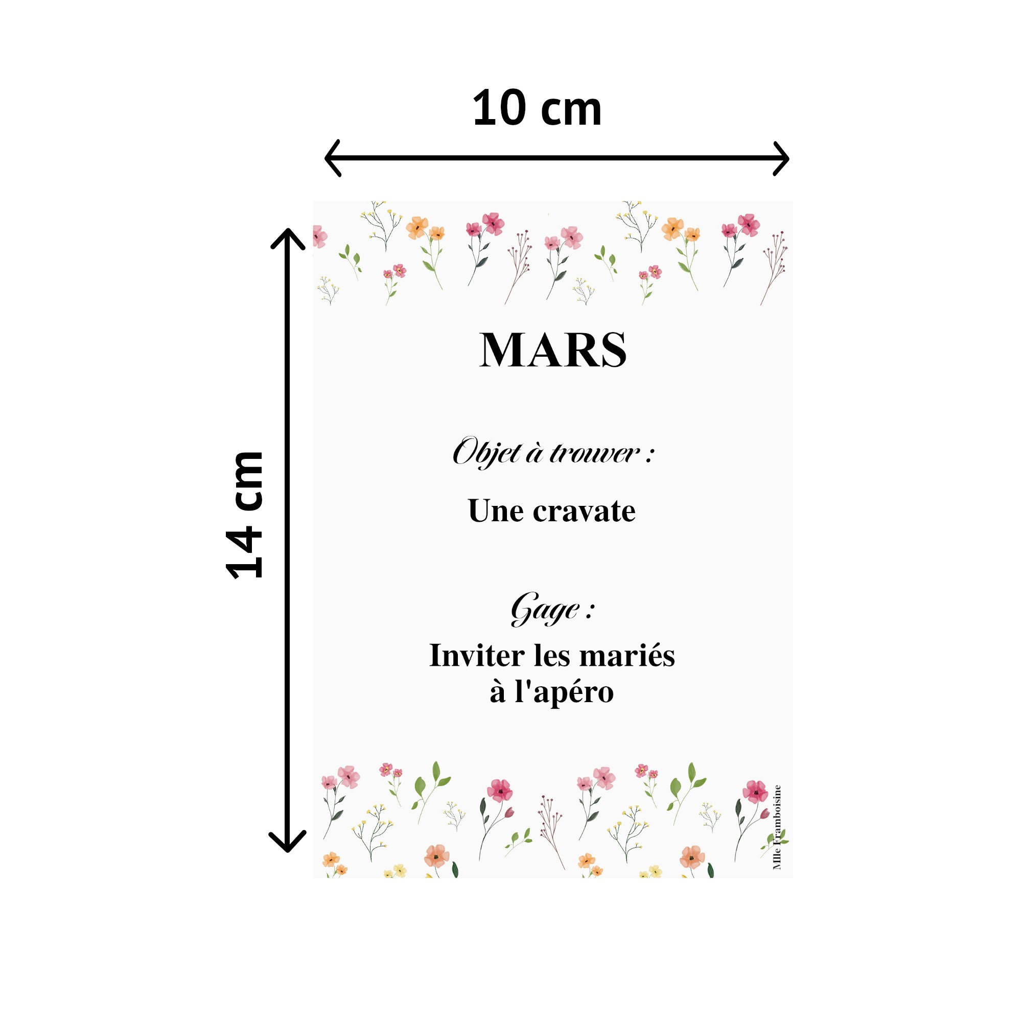JEU DES 12 MOIS - GAGES - ANIMATION MARIAGE - MOTIF FLEURS DES CHAMPS