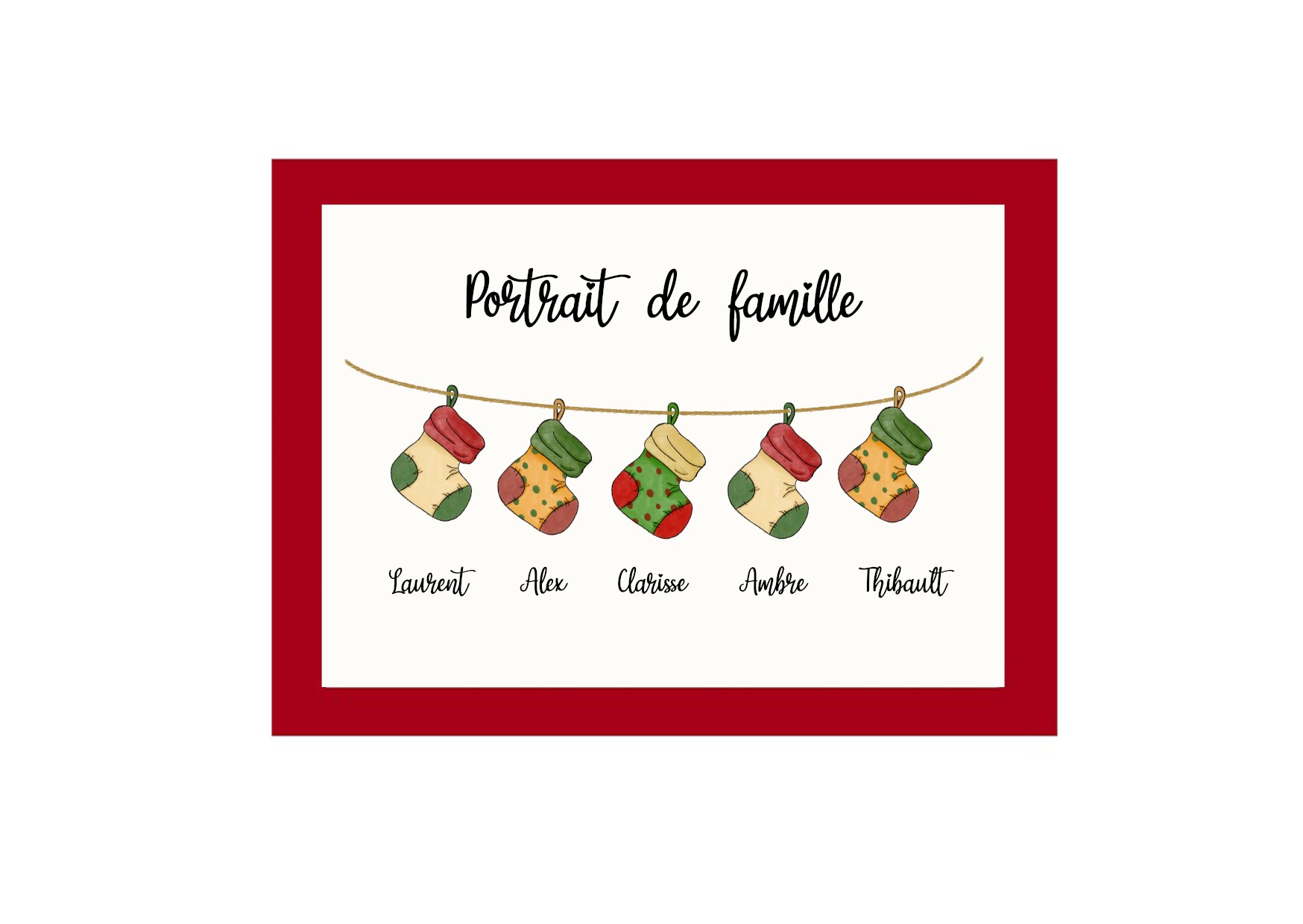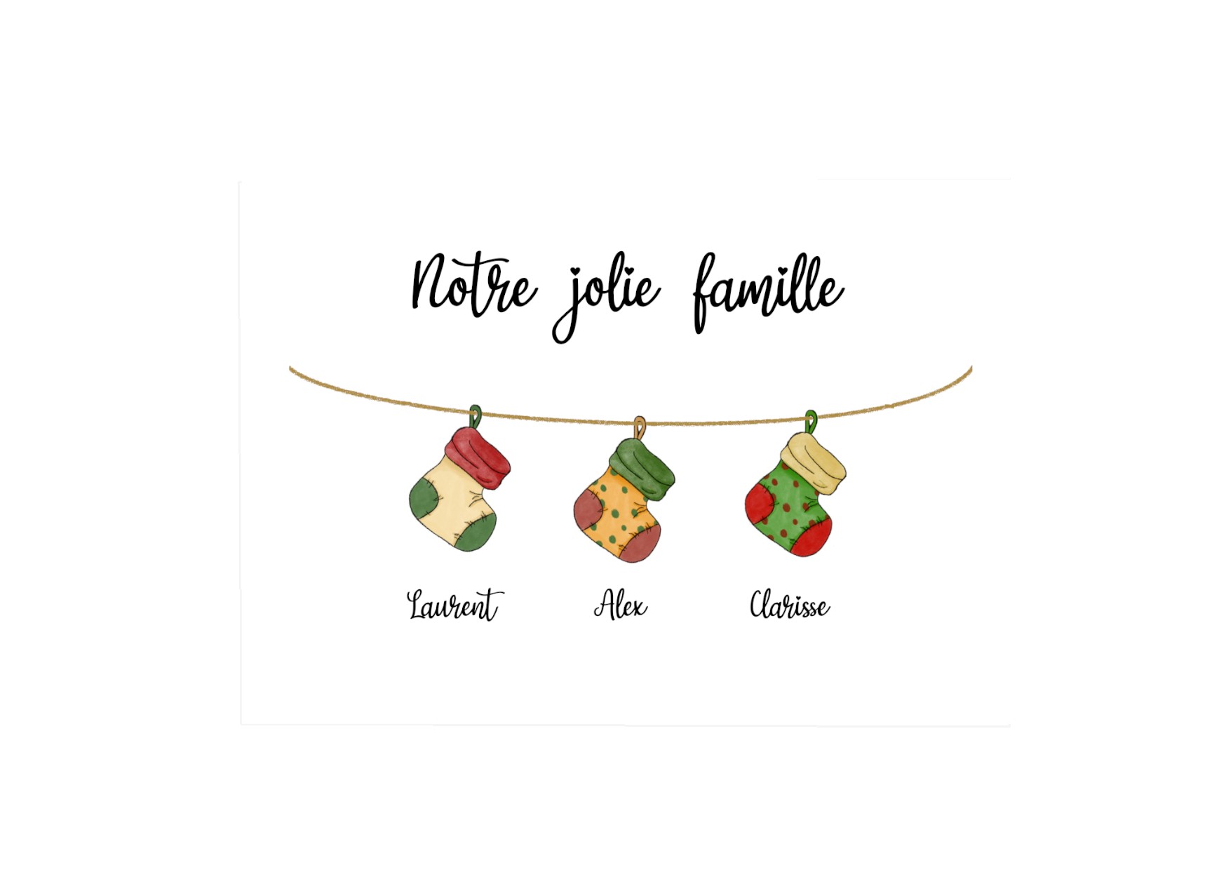 Voici une affiche personnalisée avec le nombre de chaussettes qui composent votre famille ainsi que le prénom de chacun qui fera une décoration de Noël originale.