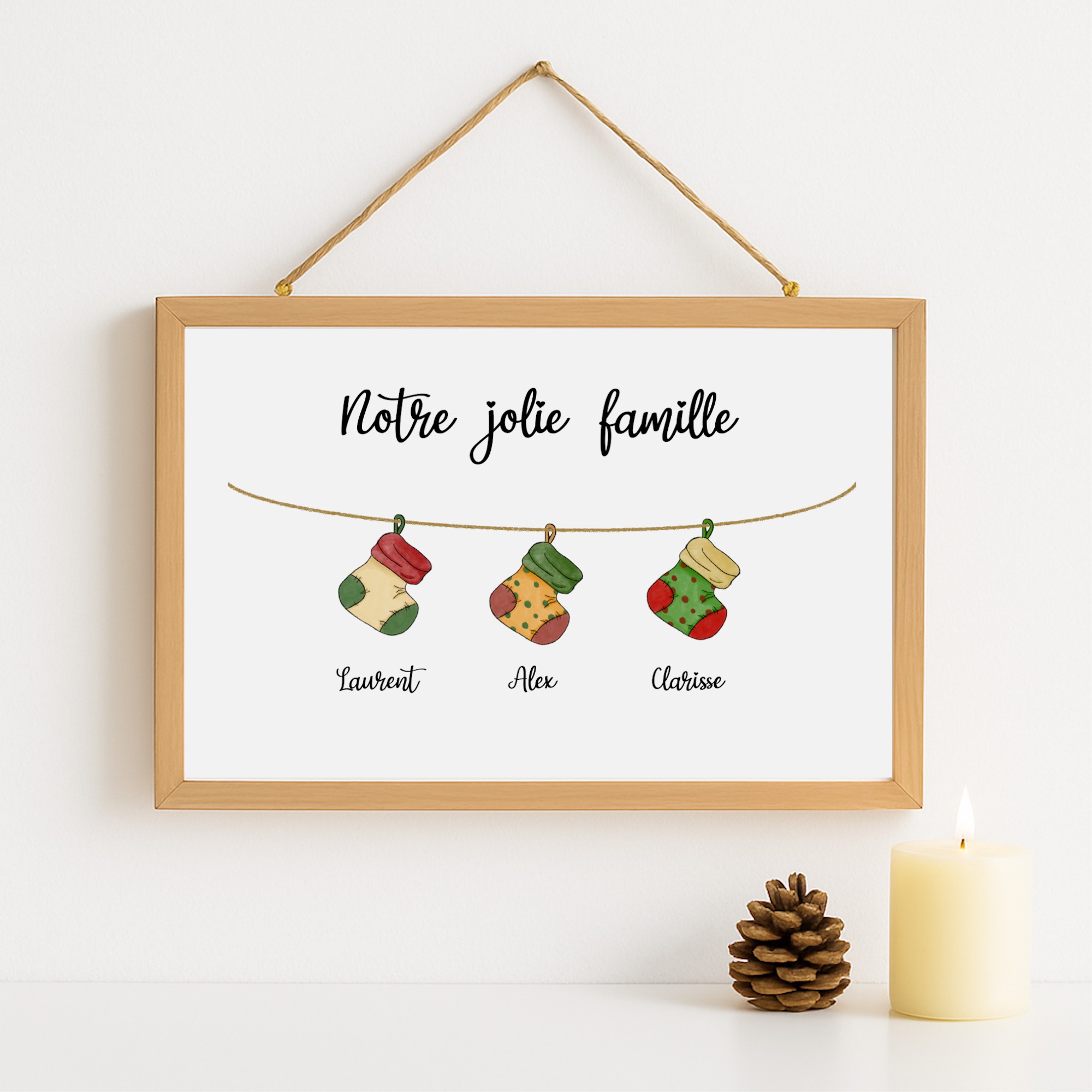 AFFICHE FAMILLE PERSONNALISÉE - DÉCORATION DE NOÊL - CHAUSSETTES DE NOEL