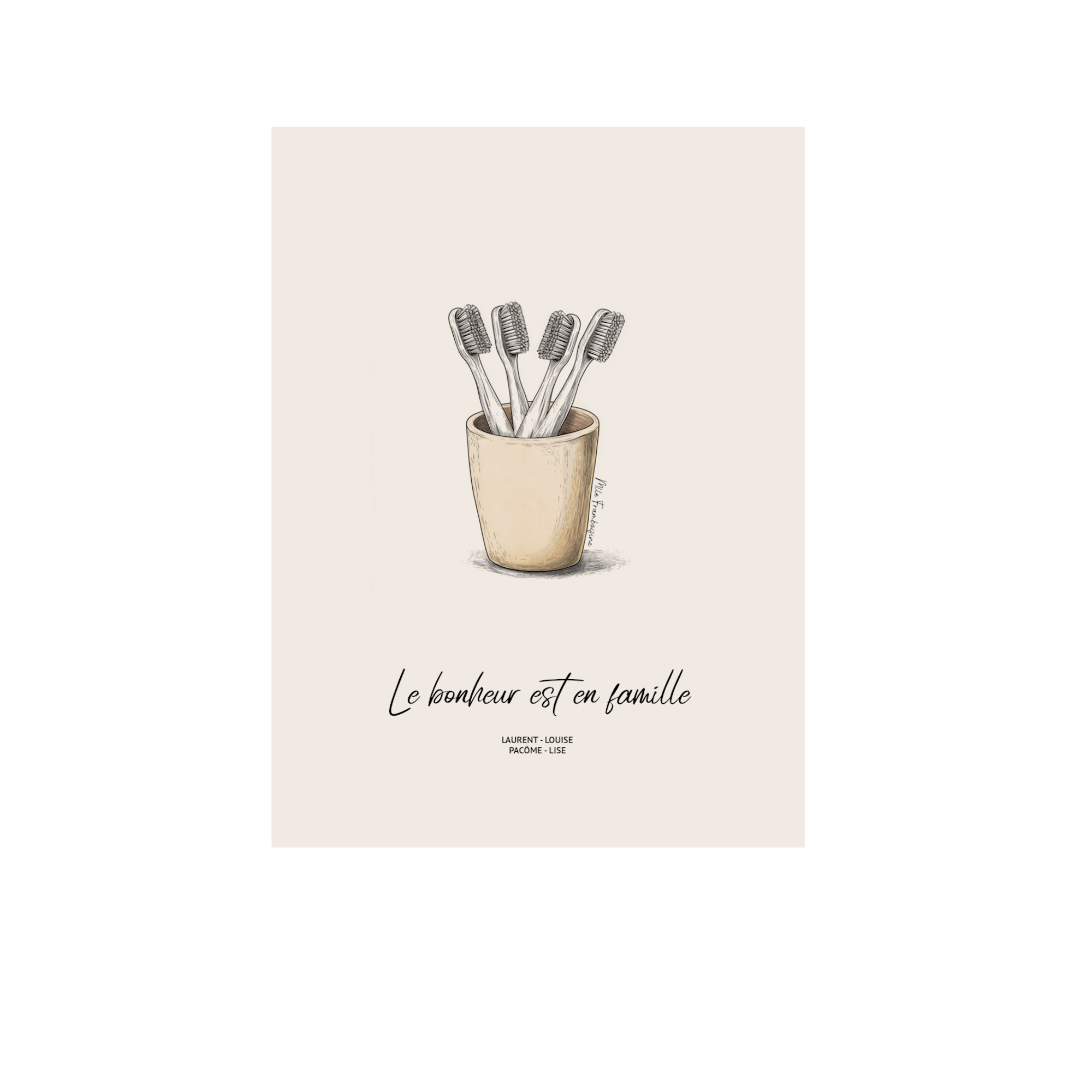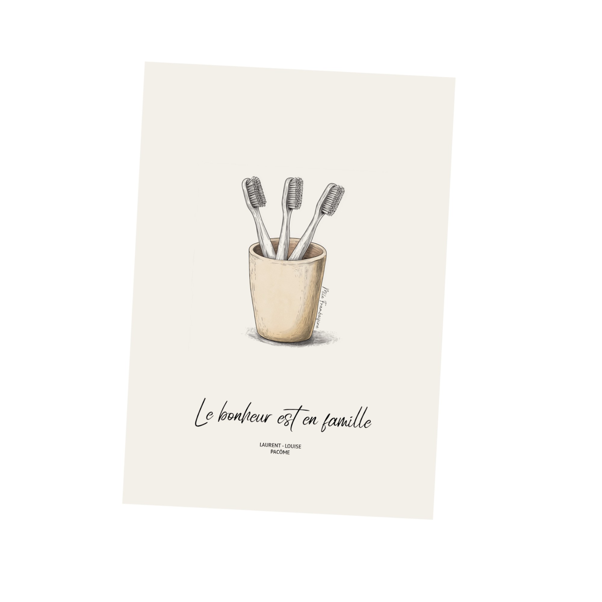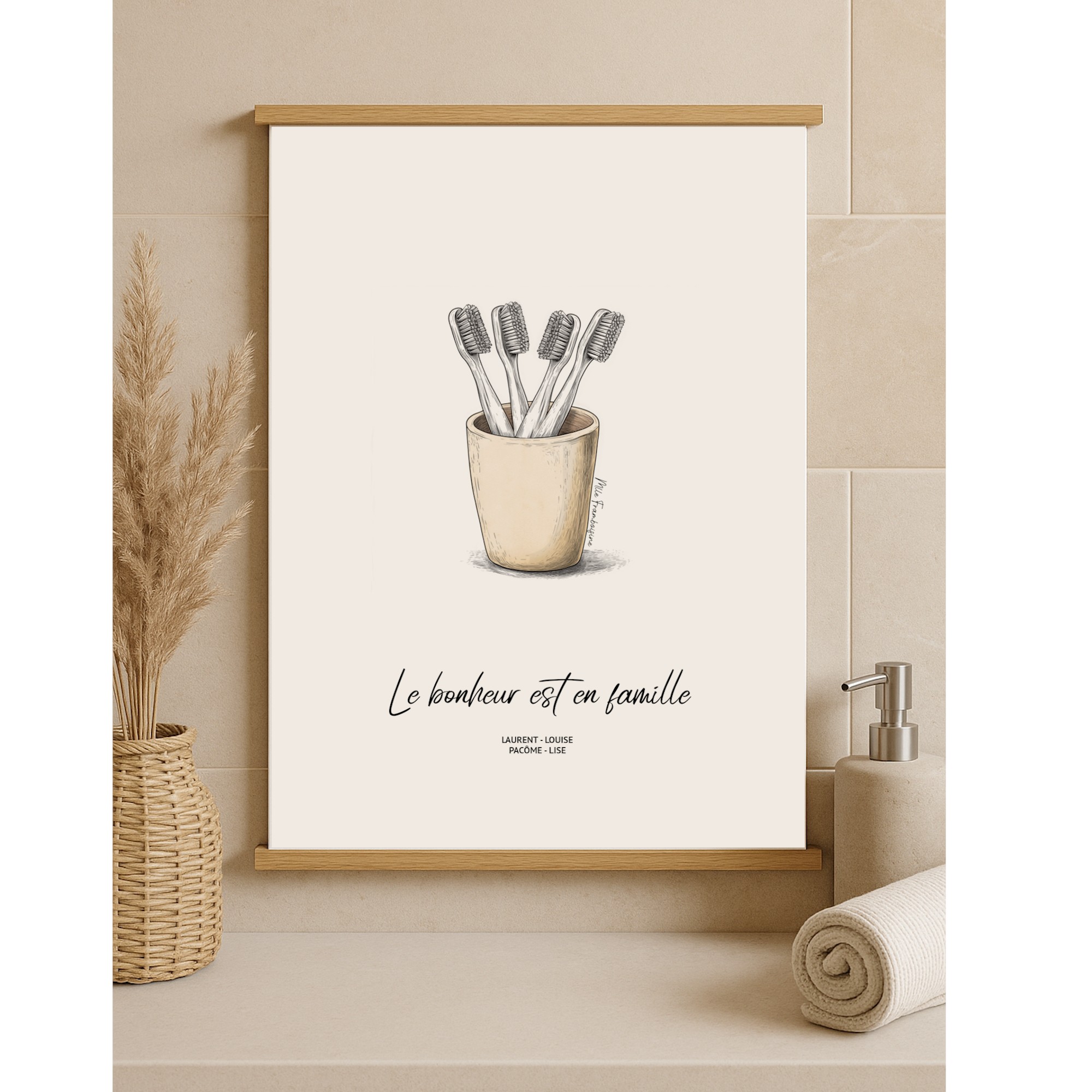 AFFICHE HUMORISITIQUE - POSTER PORTRAIT DE FAMILLE PERSONNALISÉE - BROSSES À DENT - DECORATION SALLE DE BAIN