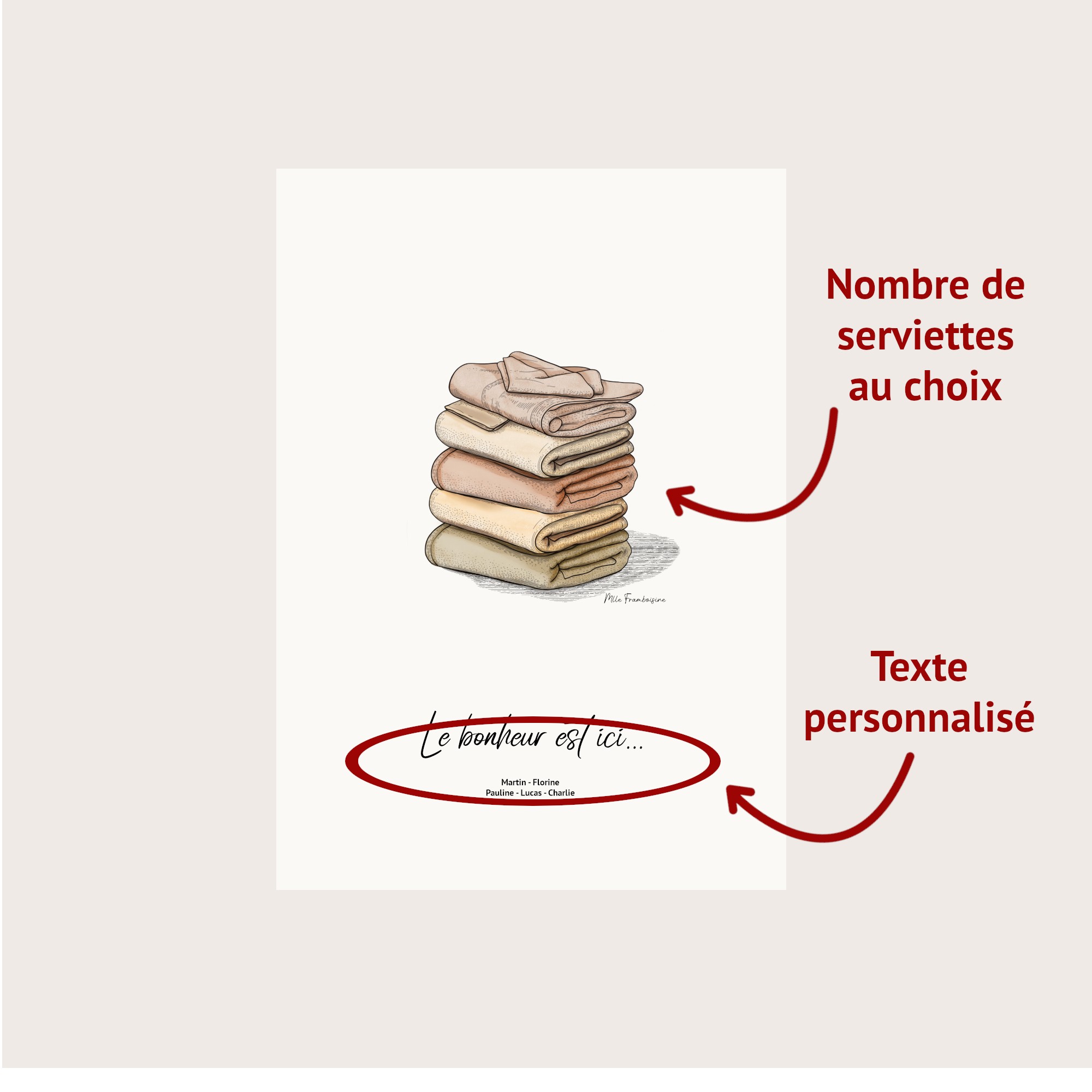 - Le nombre de serviettes est à personnaliser selon la composition de votre famille