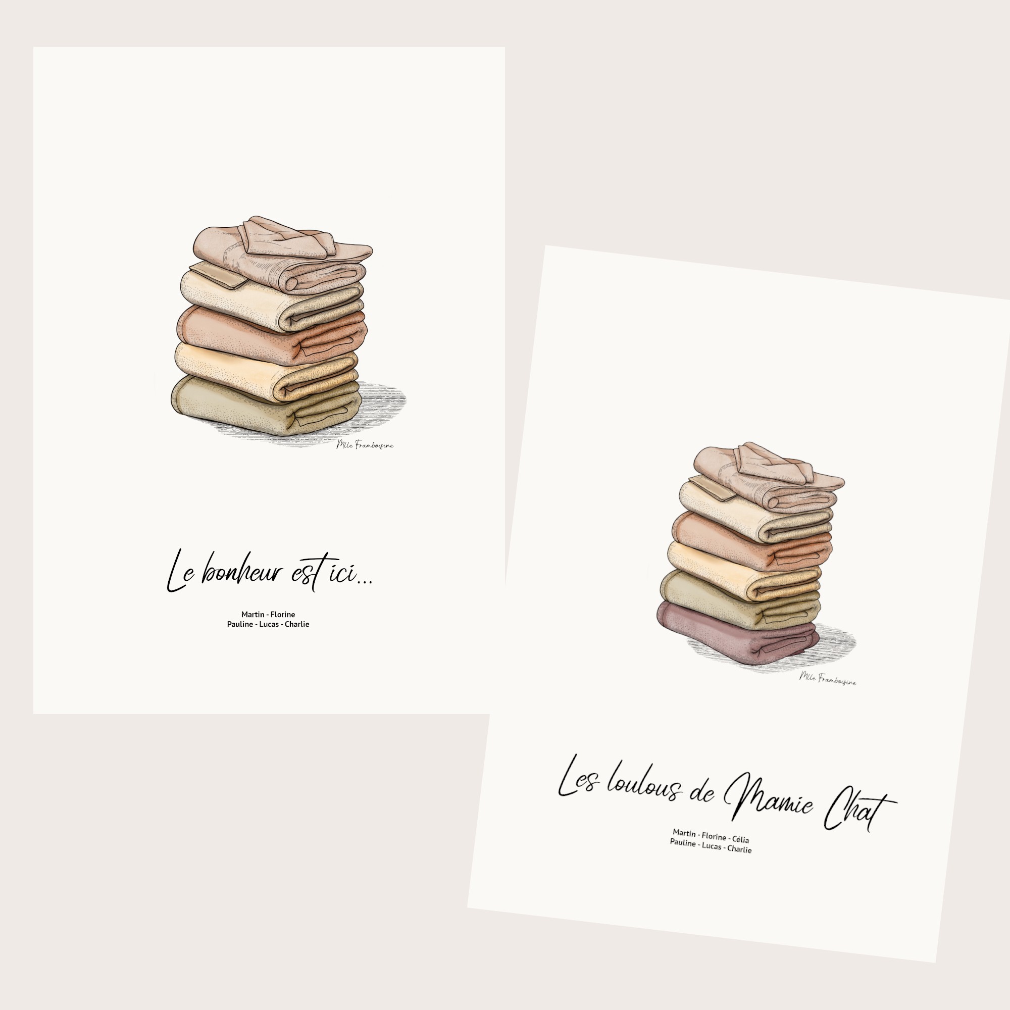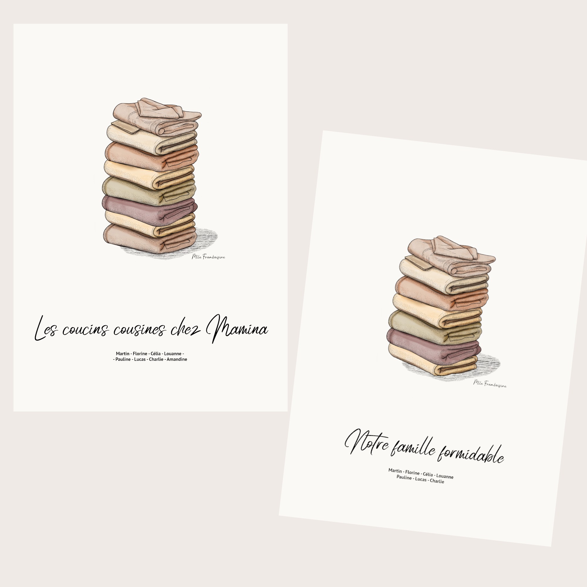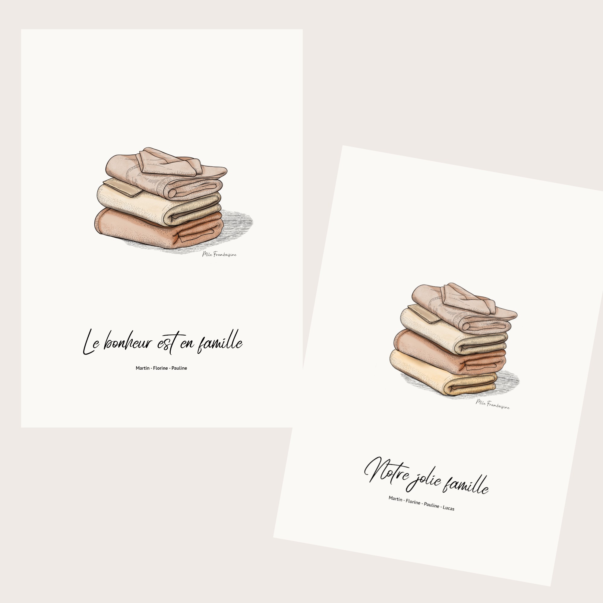 Affiche personnalisée avec le nombre de serviettes qui composent votre famille ainsi que le prénom sur chacun.