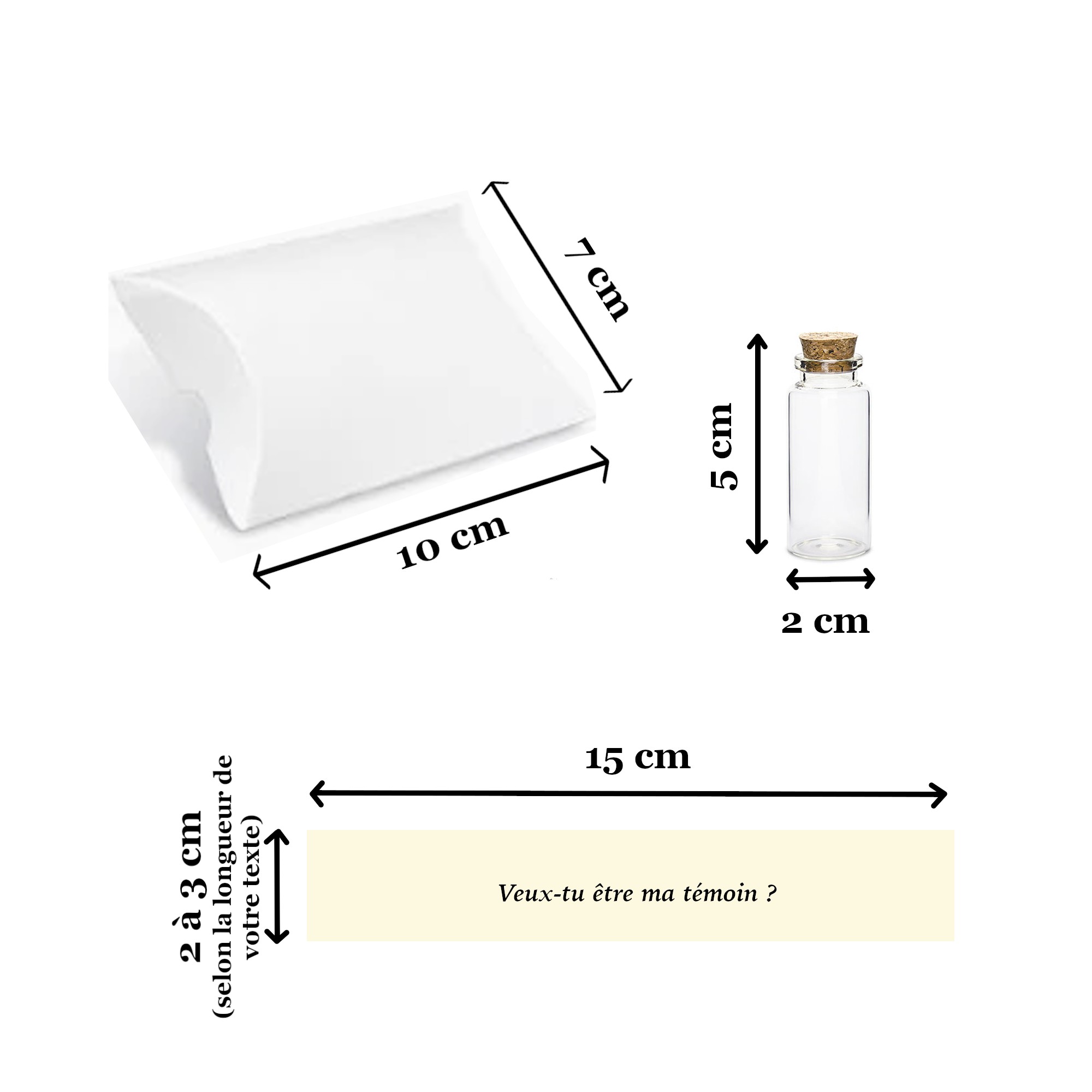 Dimensions du petit message : 15 cm x 2 à 3 cm (la largeur du papier peut varier selon la longueur de votre message)