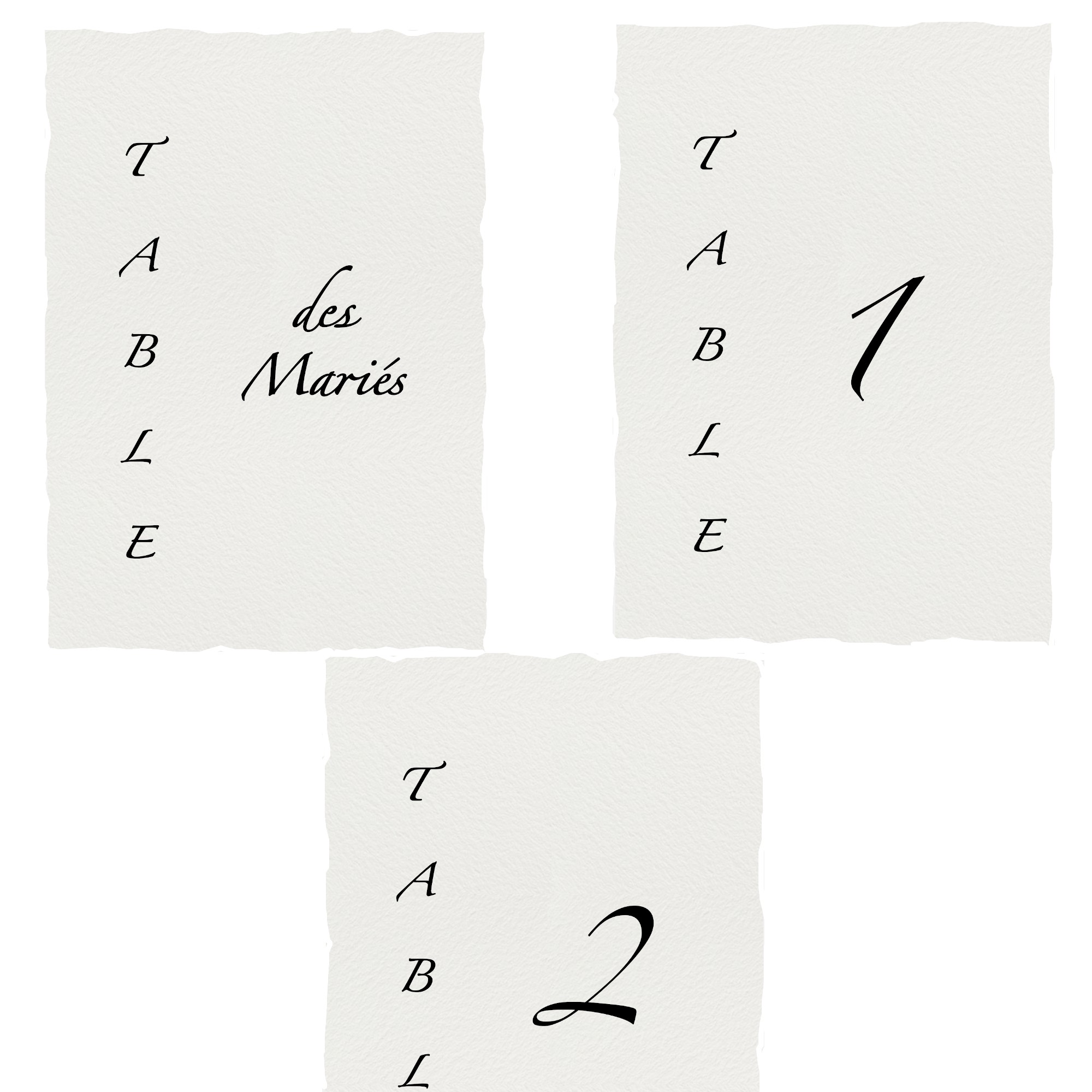 CARTE NUMÉRO OU NOM DE TABLE PERSONNALISÉE - MARIAGE CHIC ET ELEGANT - PAPIER TEXTURÉ AUX CONTOURS EFFET DÉCHIRÉ