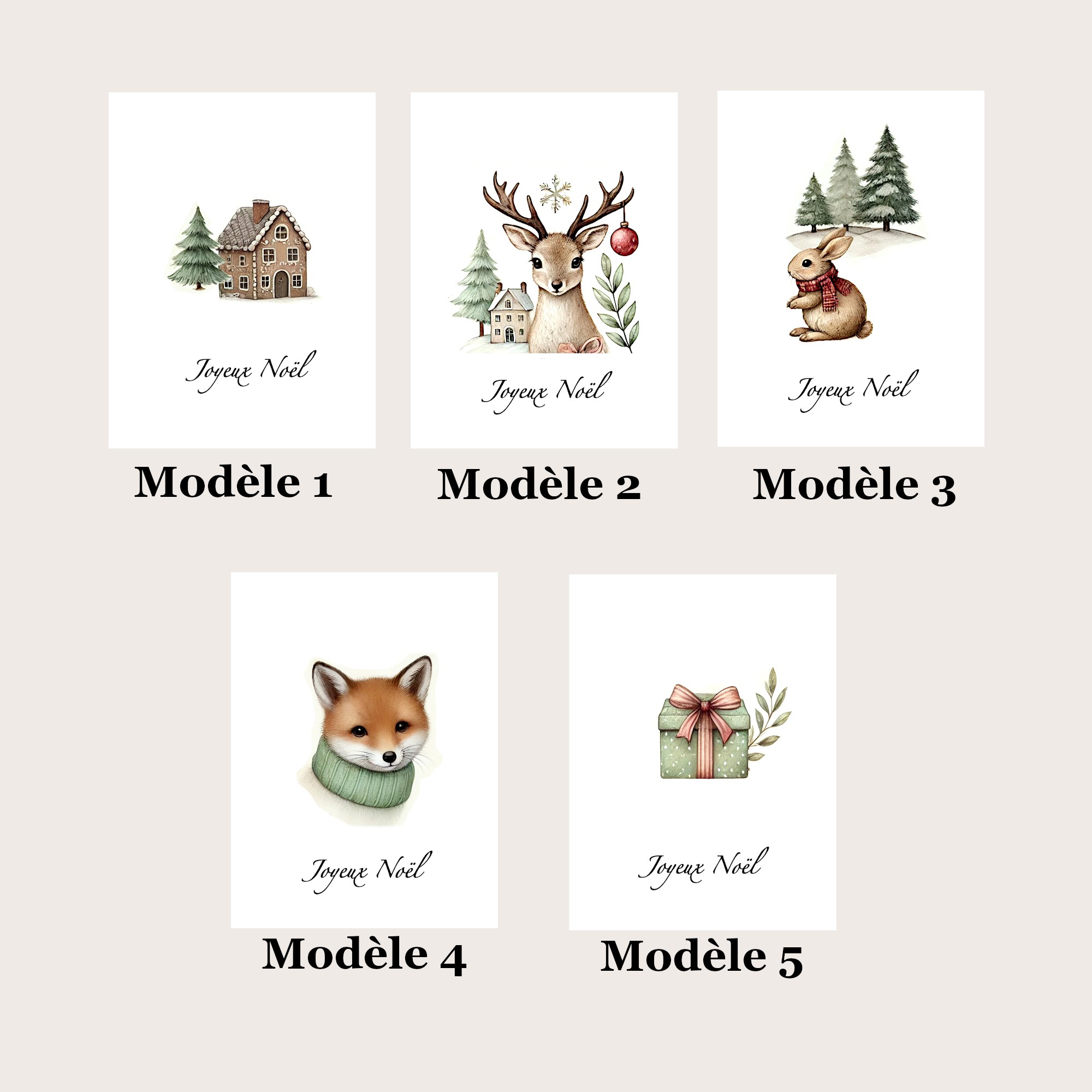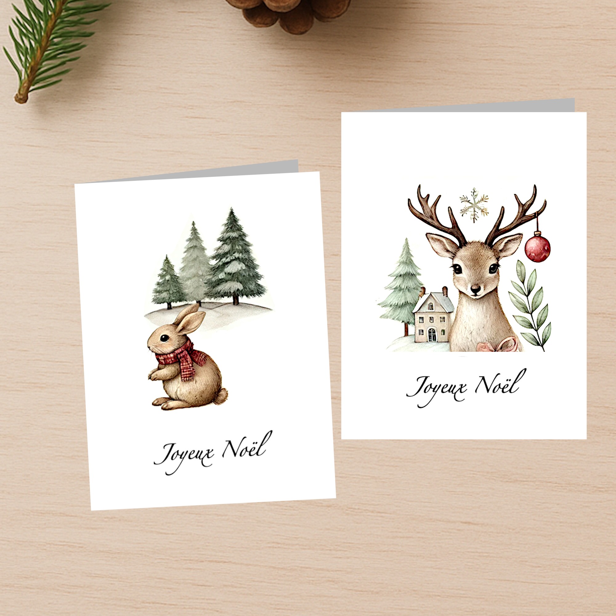CARTE DE VOEUX - JOYEUX NOËL - MOTIF VINTAGE STYLE AQUARELLE