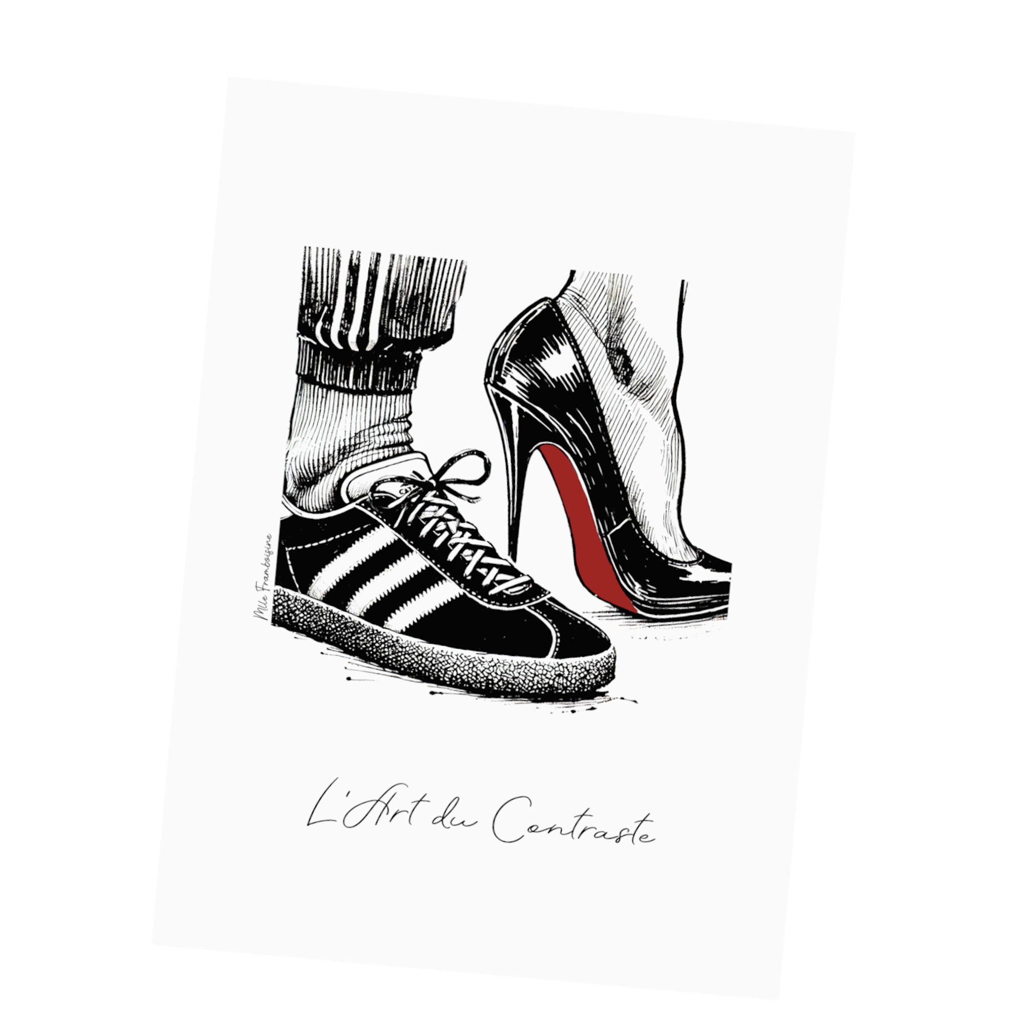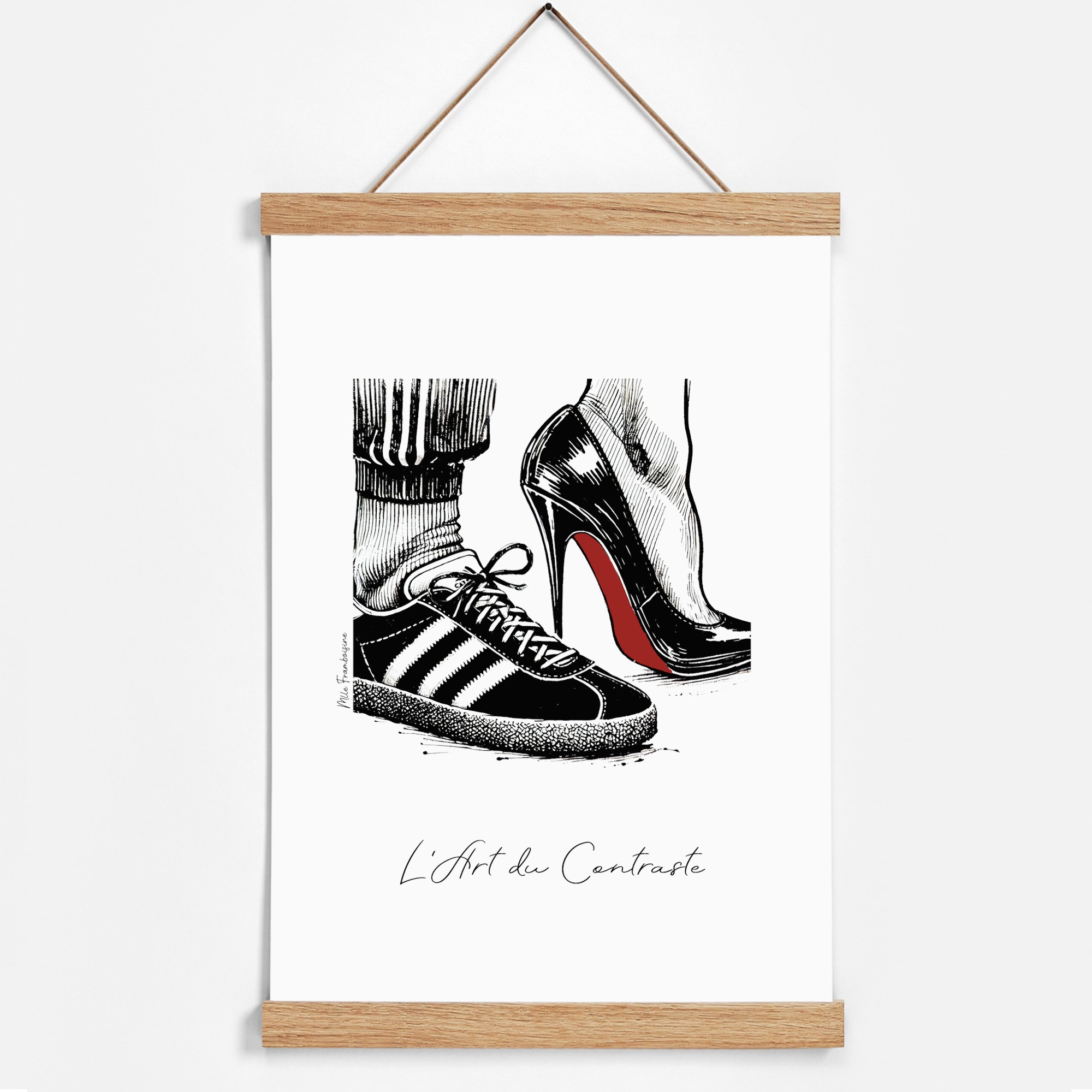 AFFICHE HUMORISTIQUE - ESCARPIN VS BASKET - L'ART DU CONTRASTE