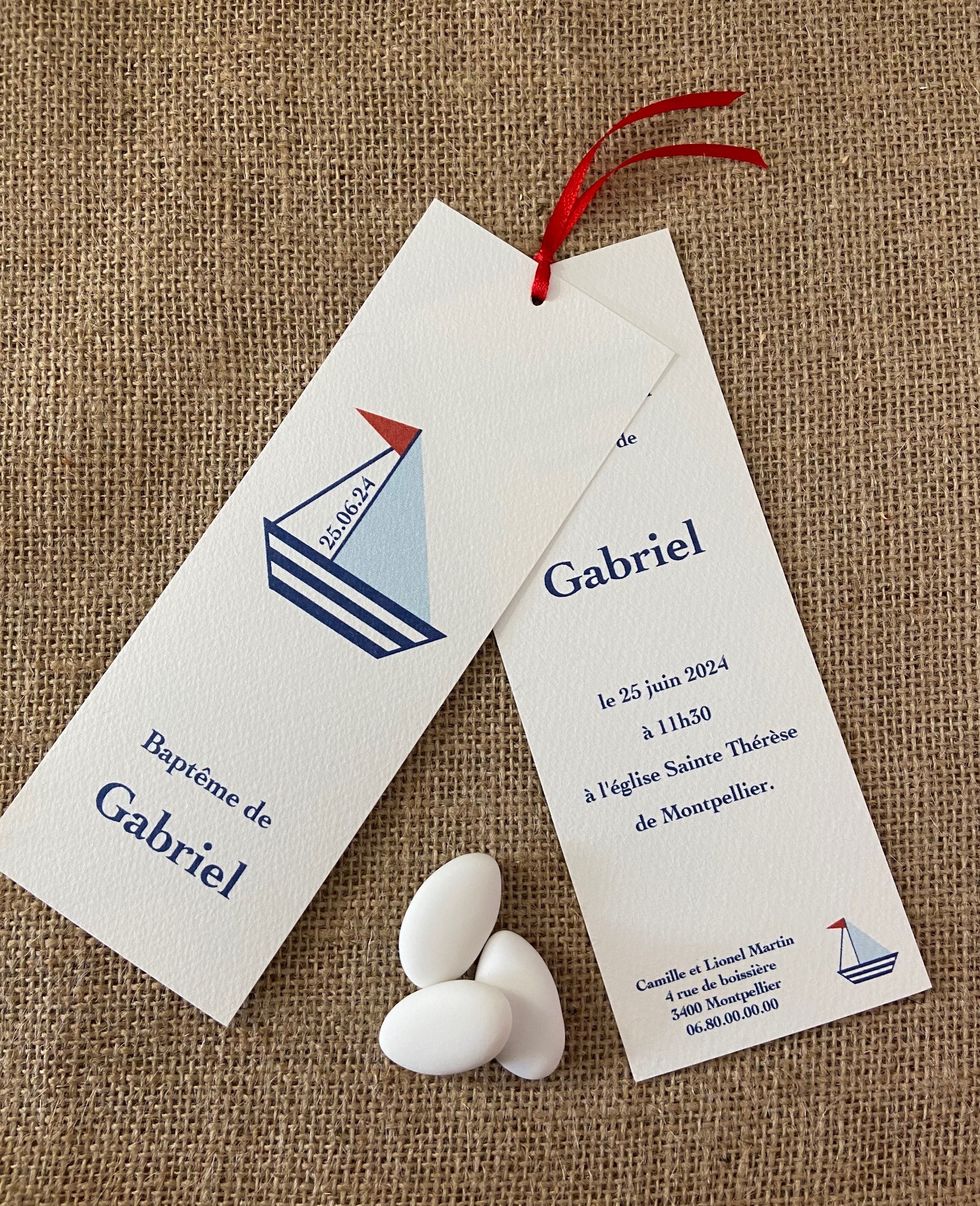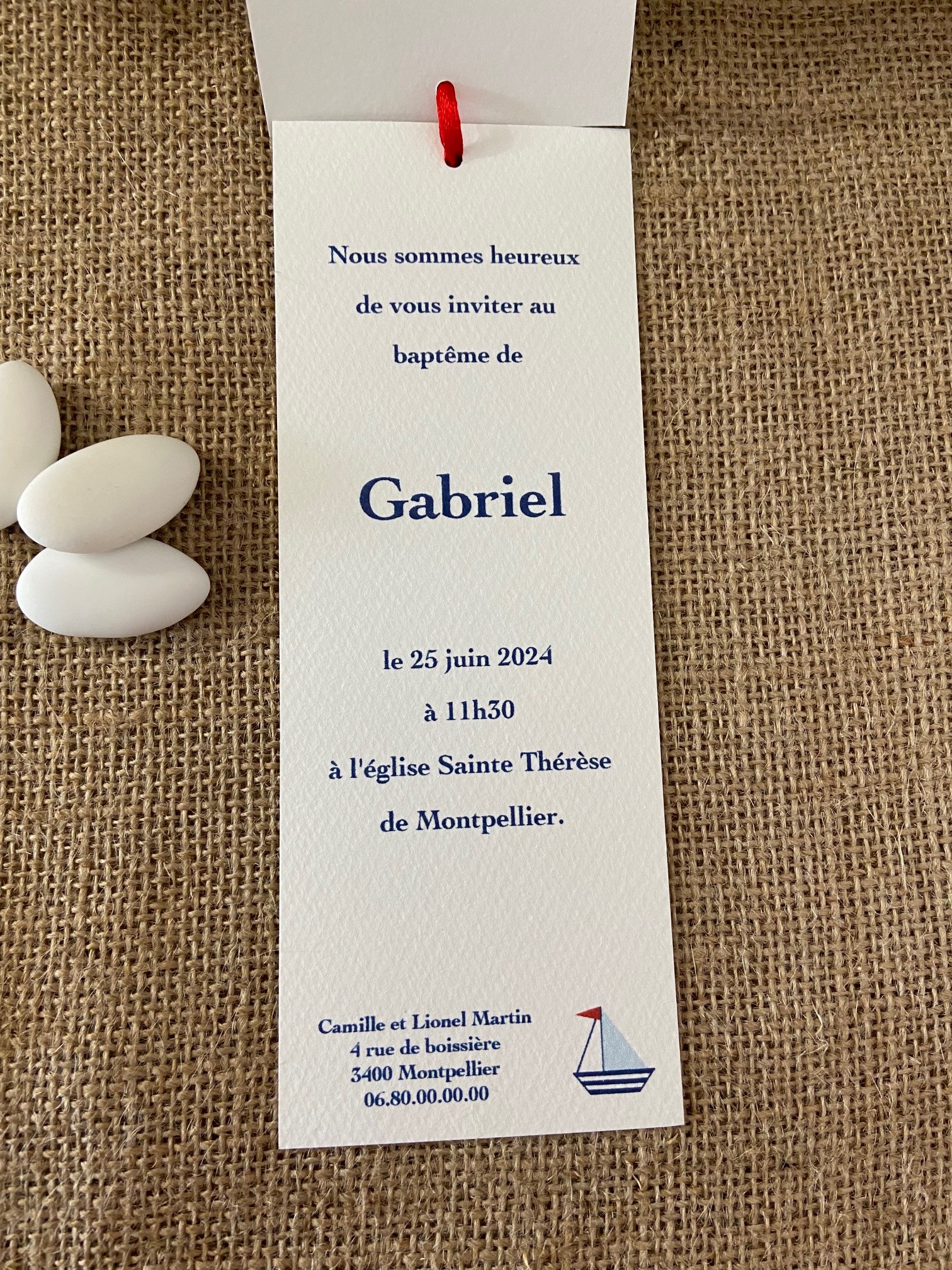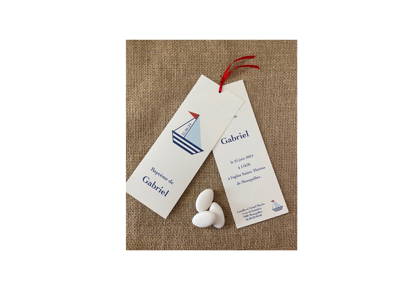 Annoncez le baptême ou la naissance de votre enfant avec cette invitation pleine de fraîcheur et de légèreté. Le motif "Petit Bateau" est un classique indémodable qui évoque la douceur des premières aventures. Avec ses lignes épurées et son esprit marin, ce modèle est une véritable invitation au voyage pour tous vos proches.