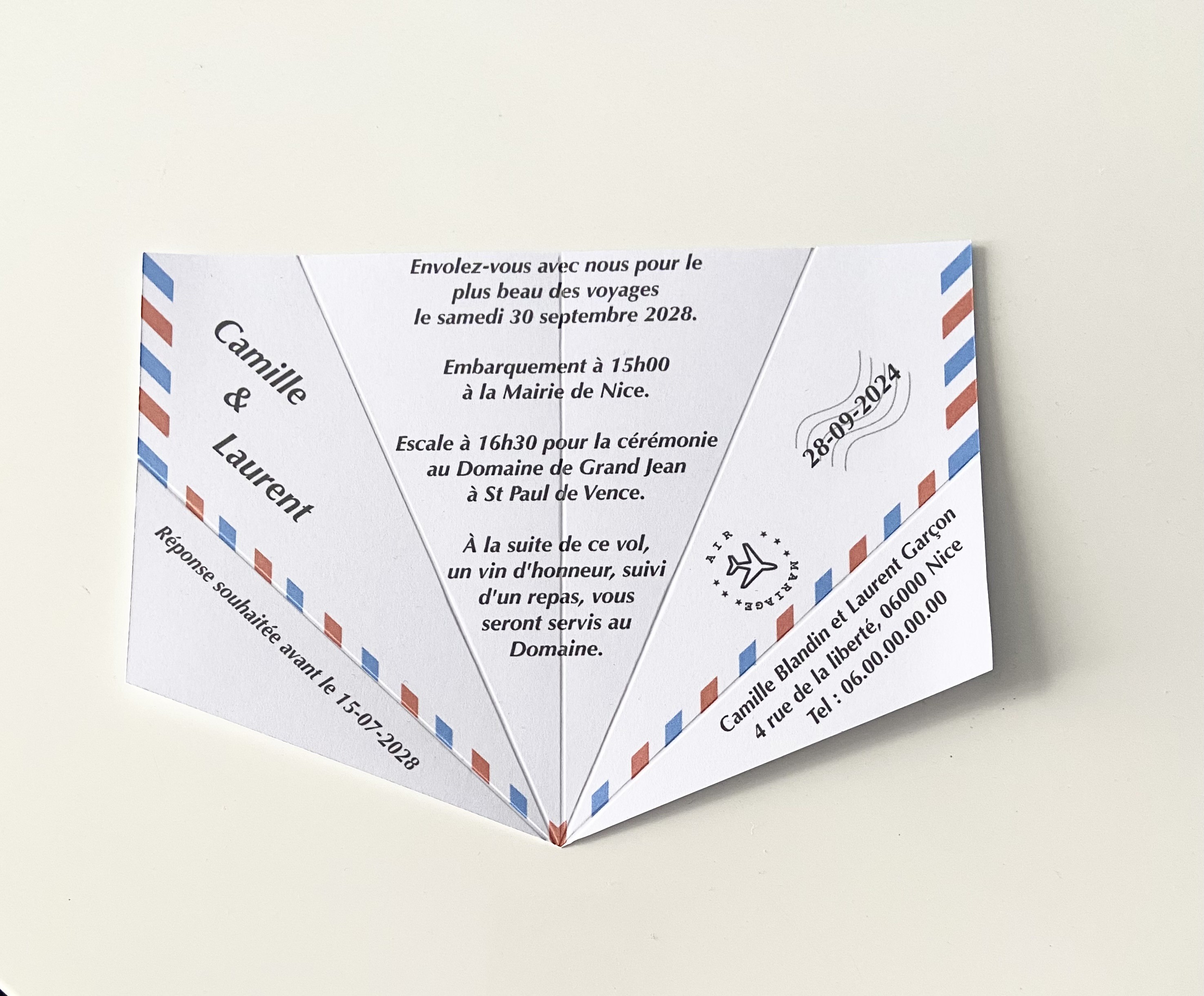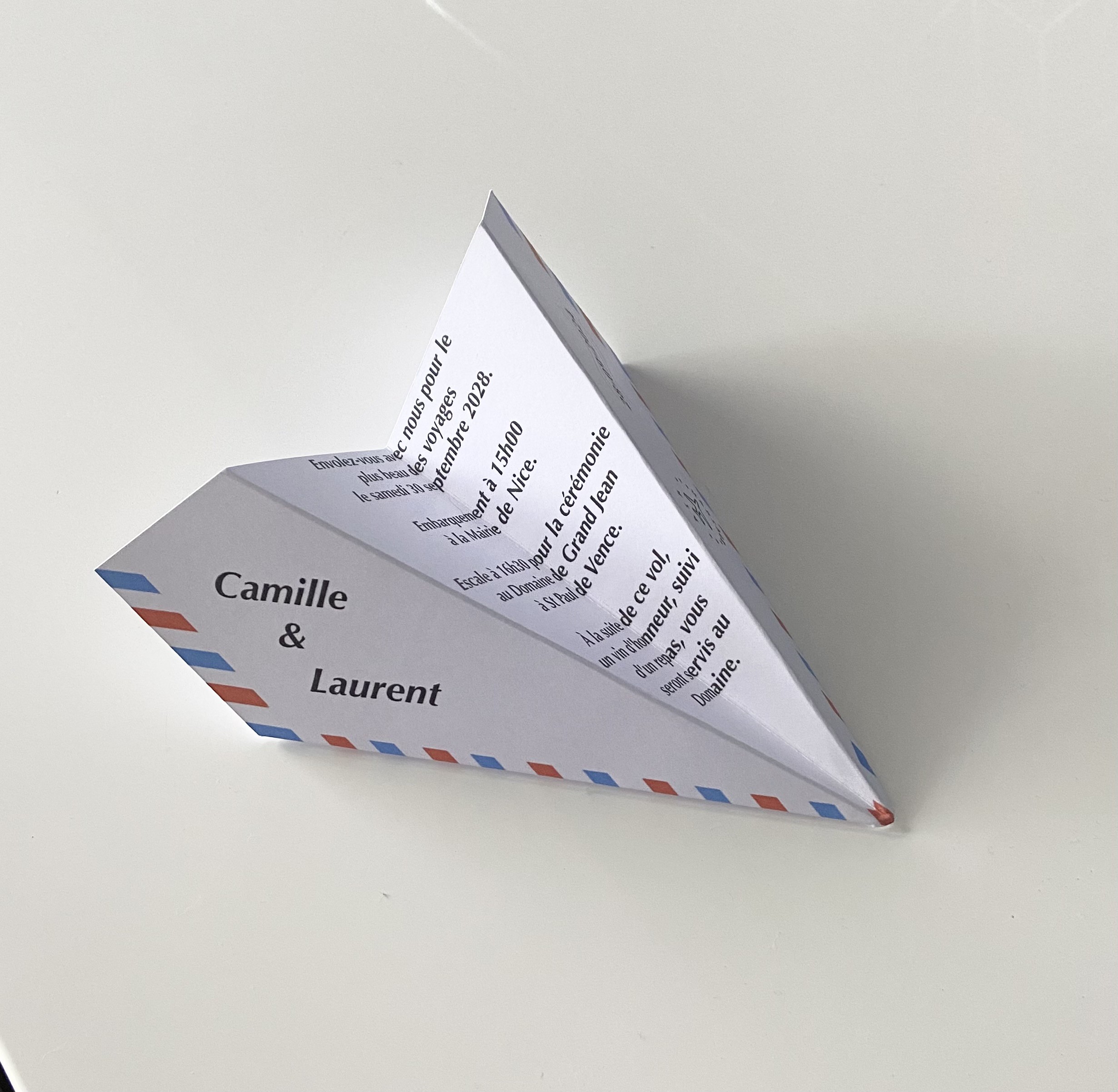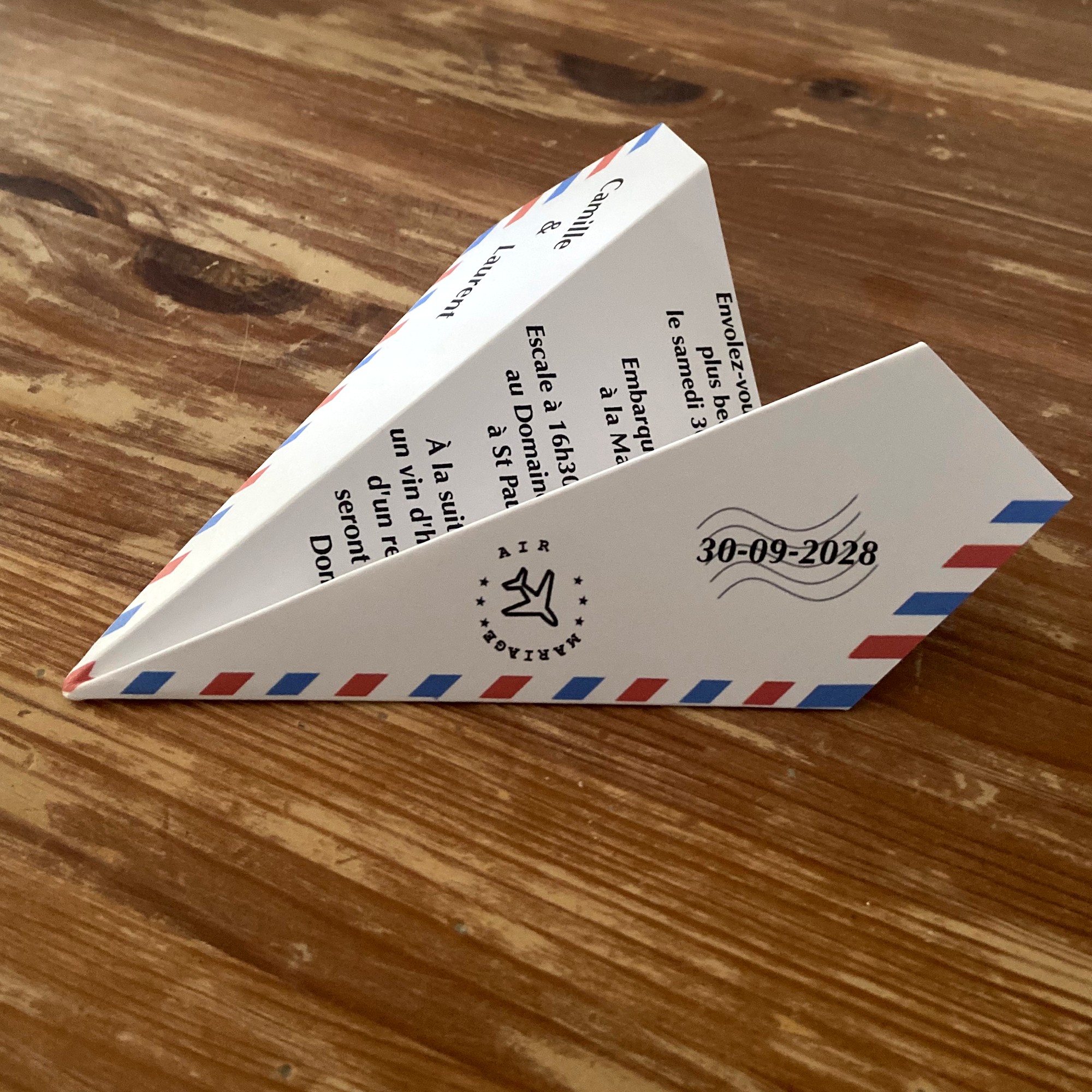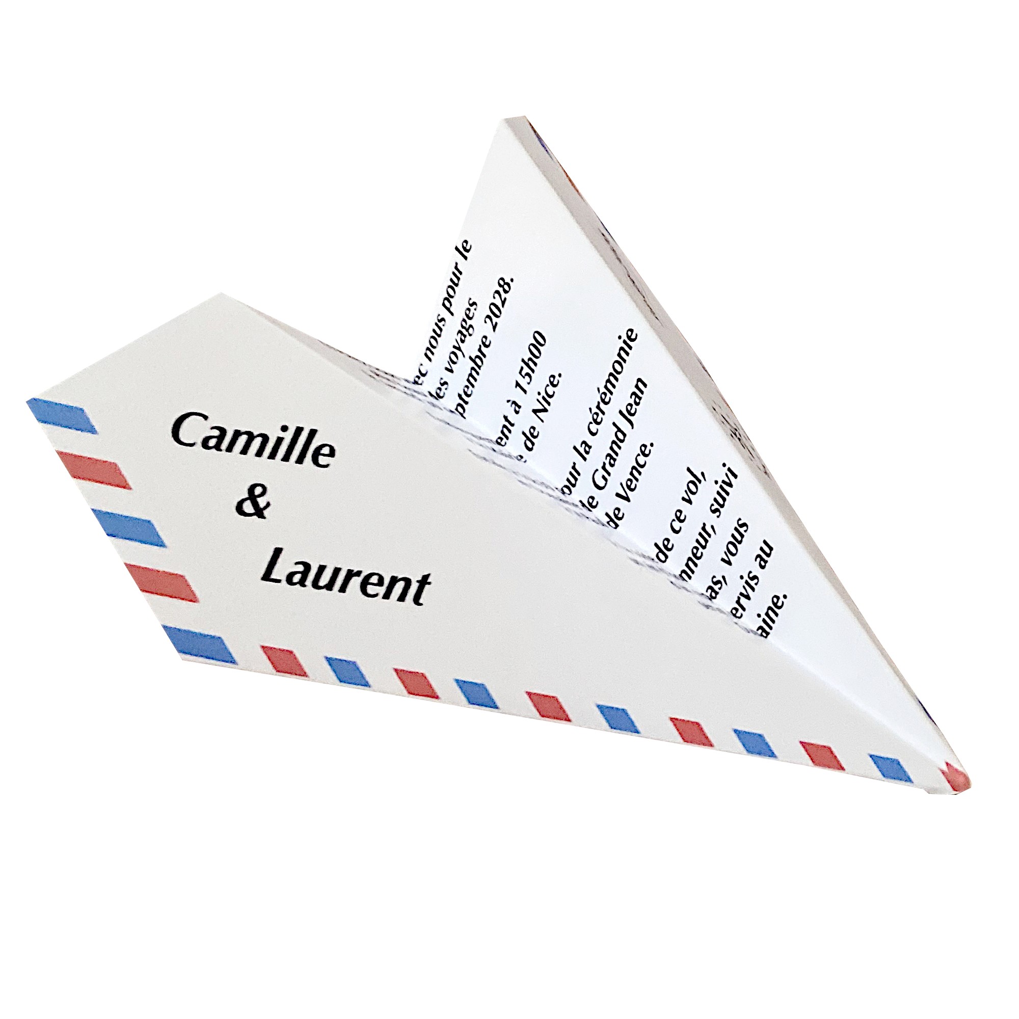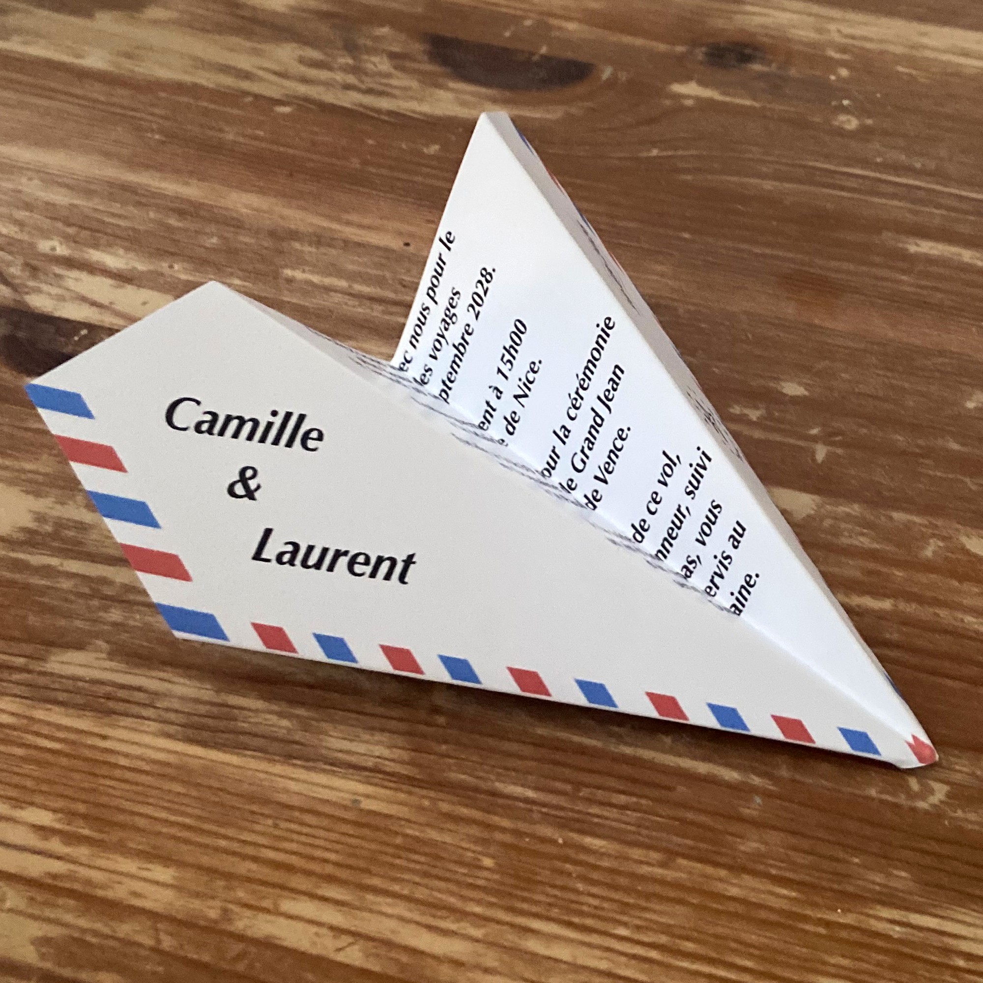 FAIRE-PART MARIAGE - THÈME VOYAGE / DESTINATION - STYLE AVION EN ORIGAMI