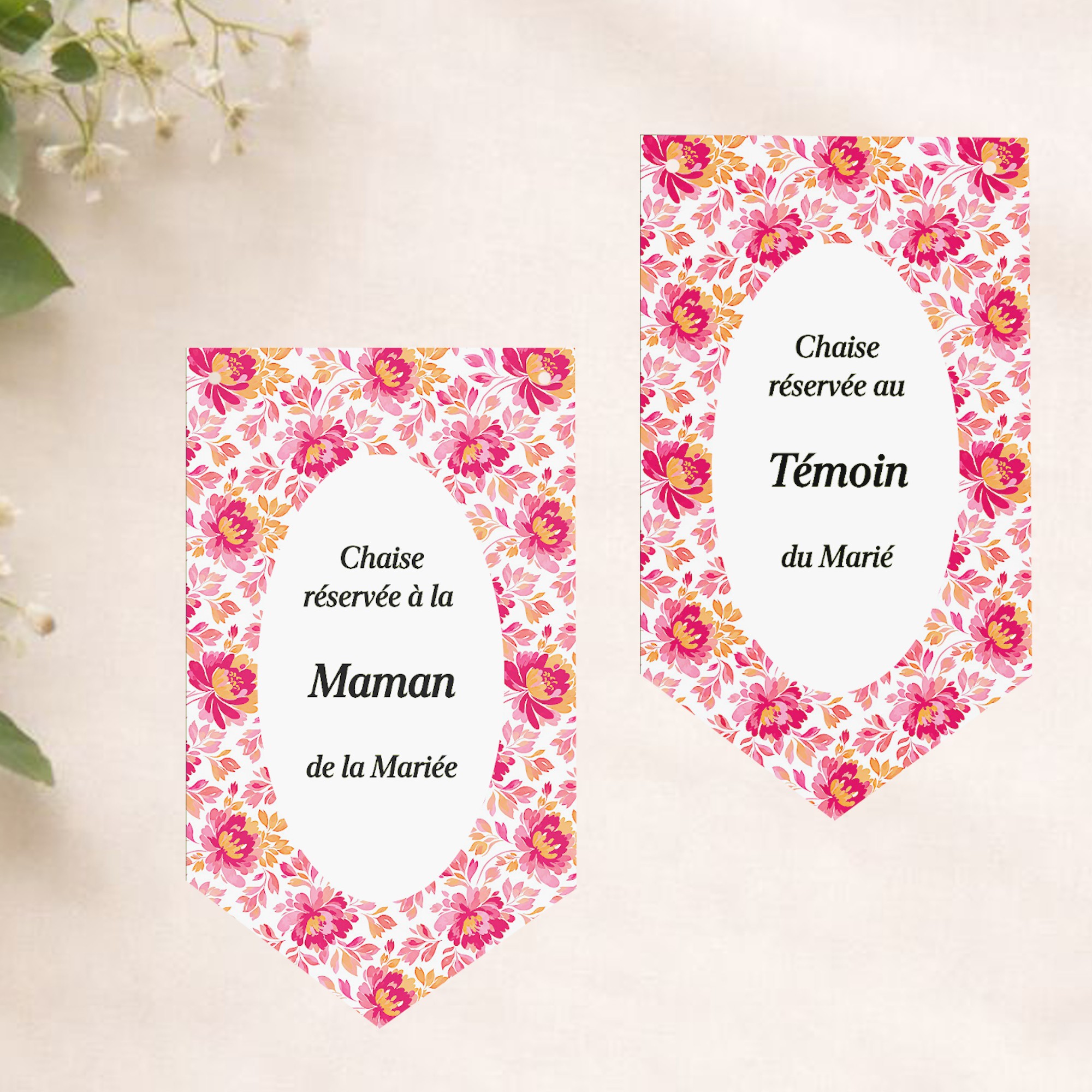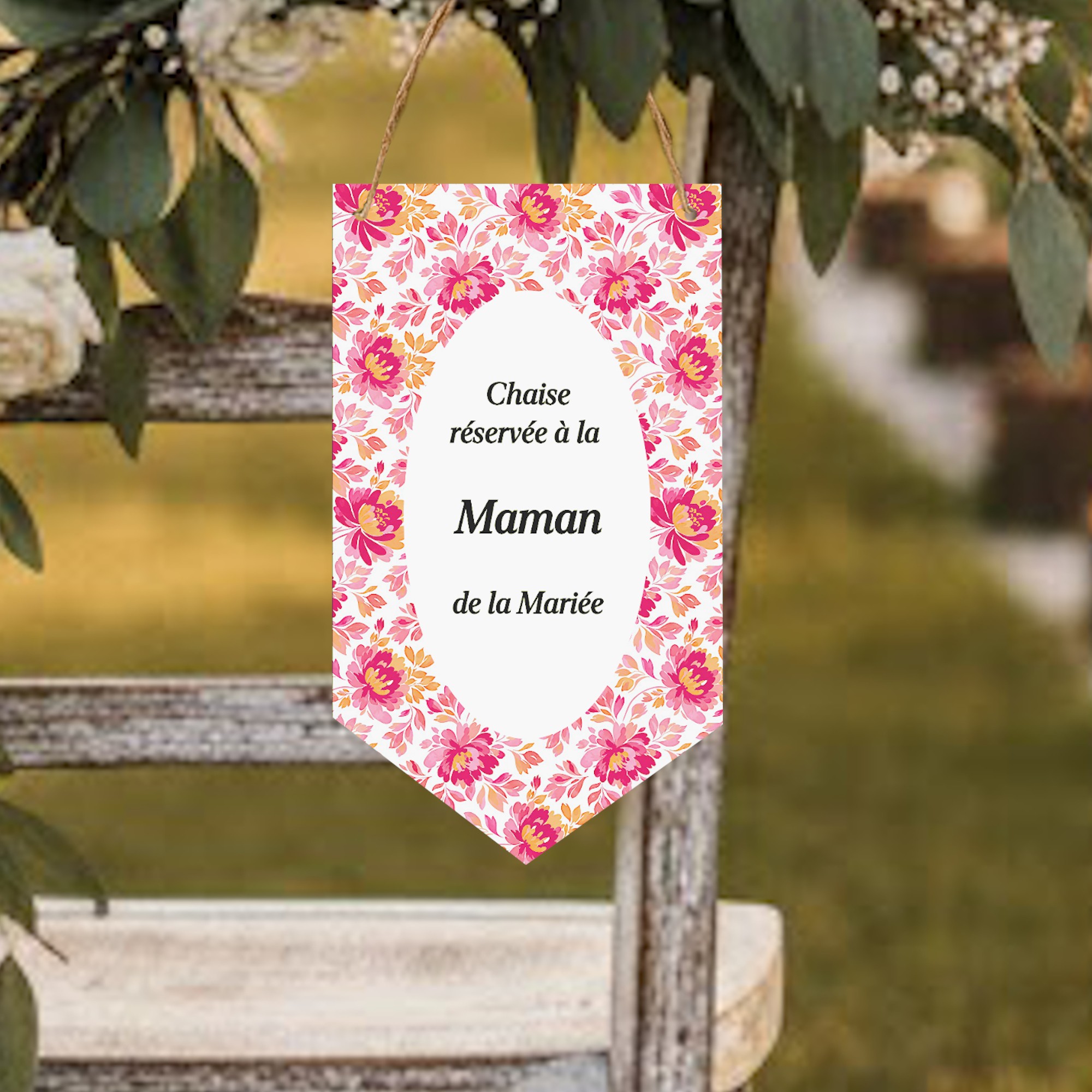 PANCARTE "CHAISE RESERVÉE" POUR MARIAGE - DÉCORATION DE MARIAGE THEME BOTANIQUE ROMANTIQUE