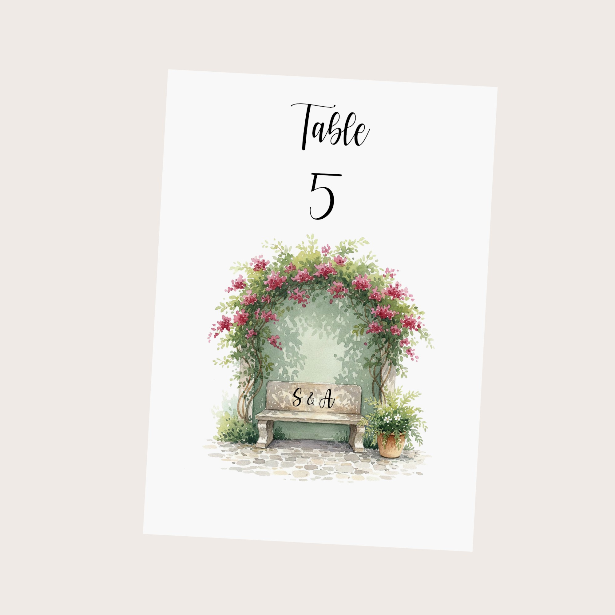 Carte personnalisée avec le numéro ou nom de vos tables pour mariage champêtre avec son motif aquarelle romantique