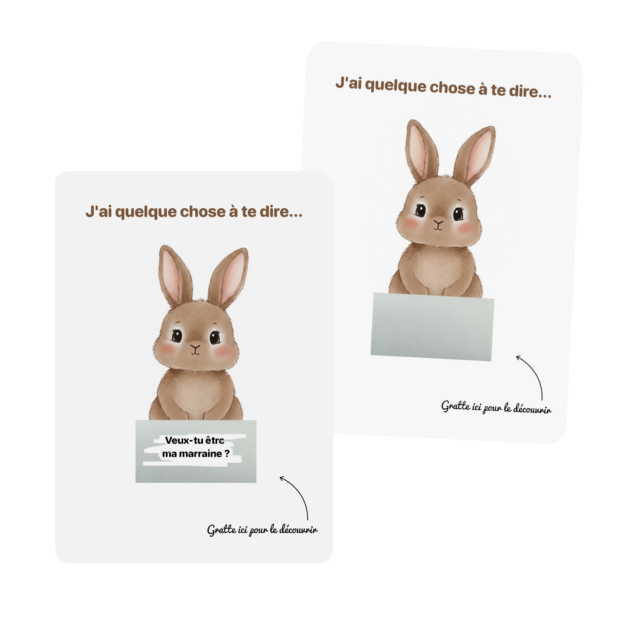 CARTE À GRATTER PERSONNALISÉE - ANNONCE GROSSESSE ou DEMANDE DE PARRAIN/MARRAINE - MOTIF PETIT LAPIN