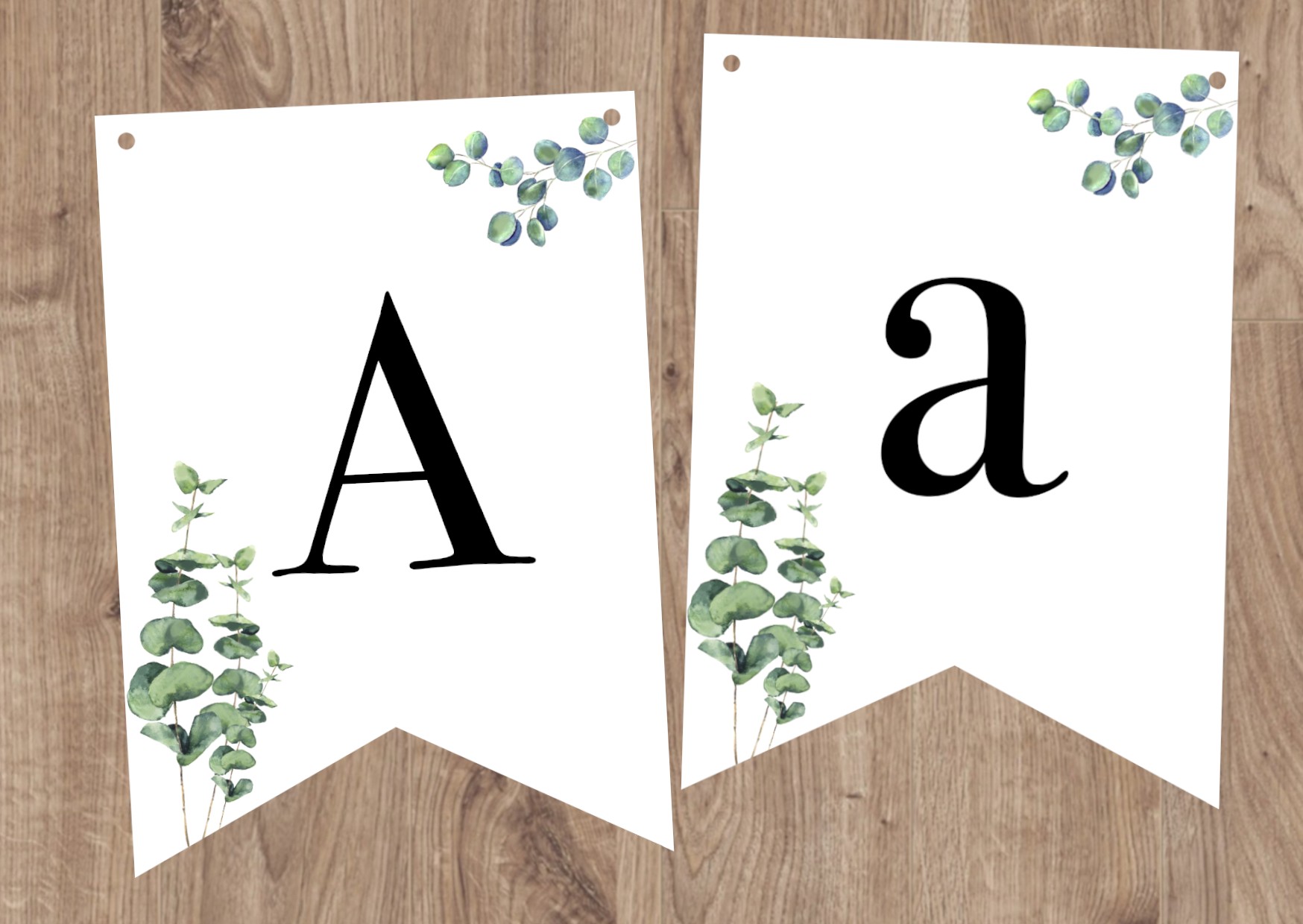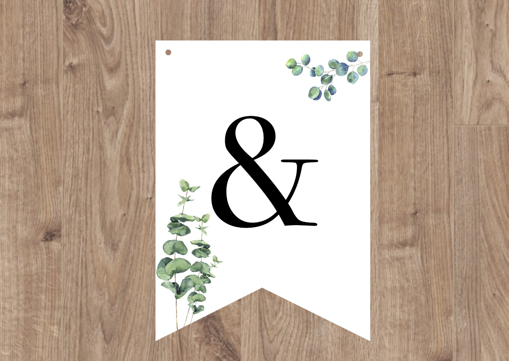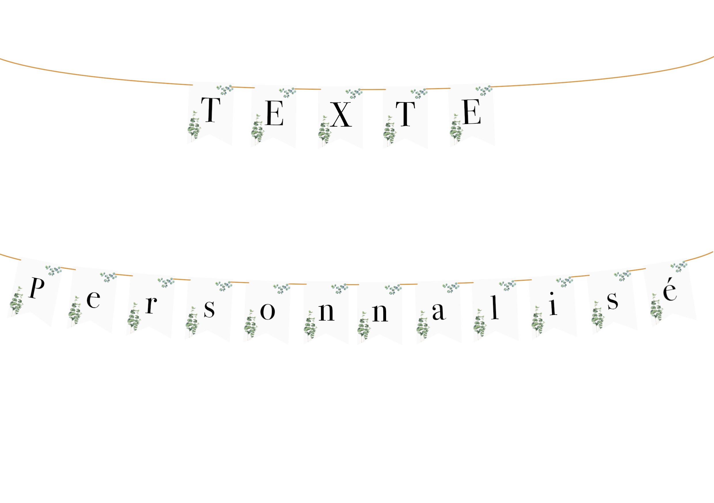 GUIRLANDE AVEC TEXTE PERSONNALISÉ - FANION - THÈME NATURE - MOTIF FEUILLE D'EUCALYPTUS