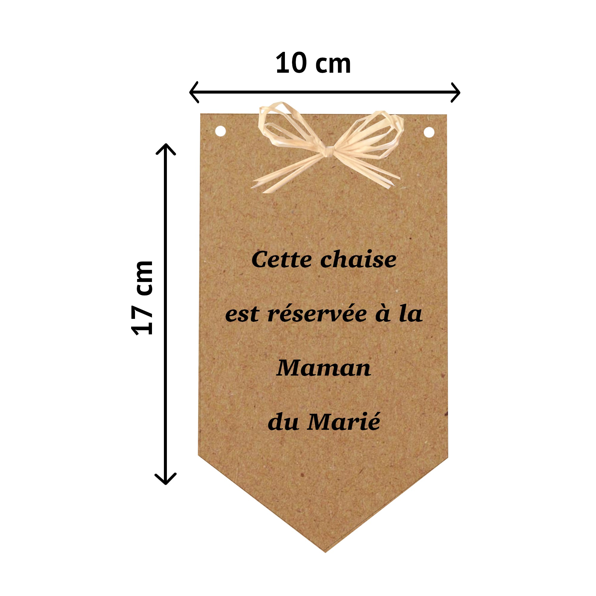 En ce jour unique, il est important que les personnes qui nous sont les plus chères soient au plus près de soi... Voici de quoi en être sûr avec cette pancarte sur lequel sera noté le texte de votre choix (Chaise réservée à la maman de la mariée, au témoin, au papa...)