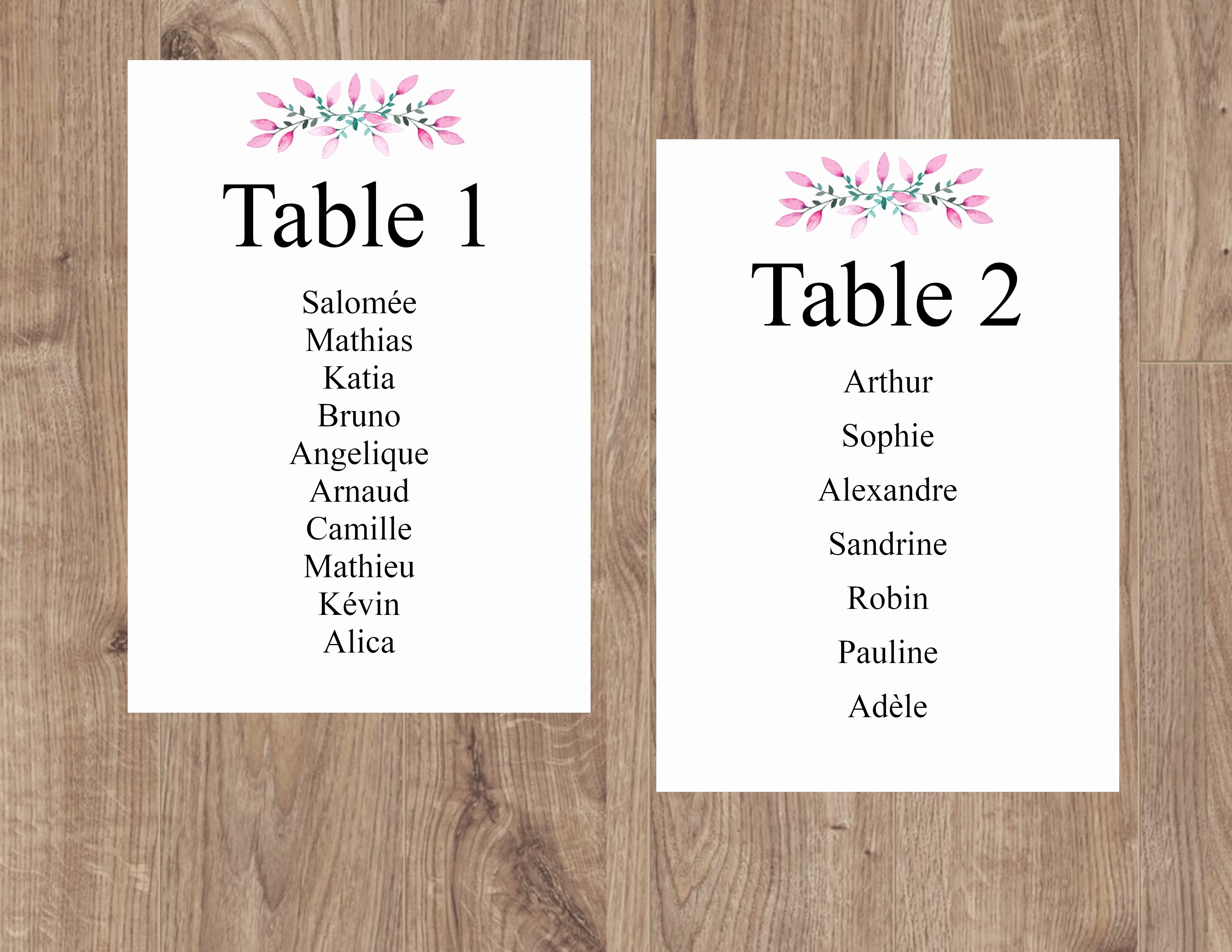 Chaque carte sera personnalisée avec vos Noms ou Numéros de table ainsi que les prénoms de vos invités.