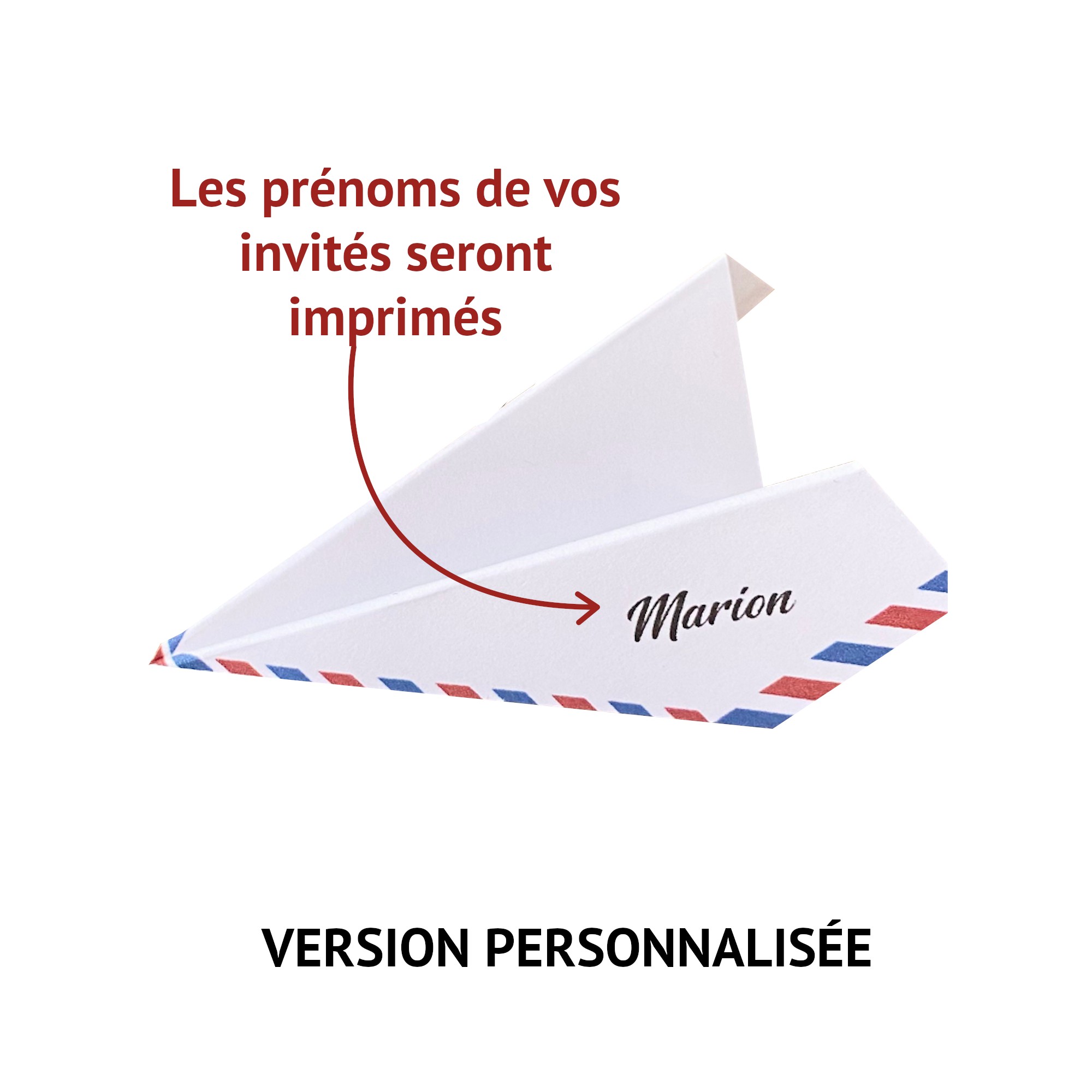 ➢ Aile gauche : Les prénoms de vos invités imprimés (liste à noter en personnalisation lors de votre commande)
