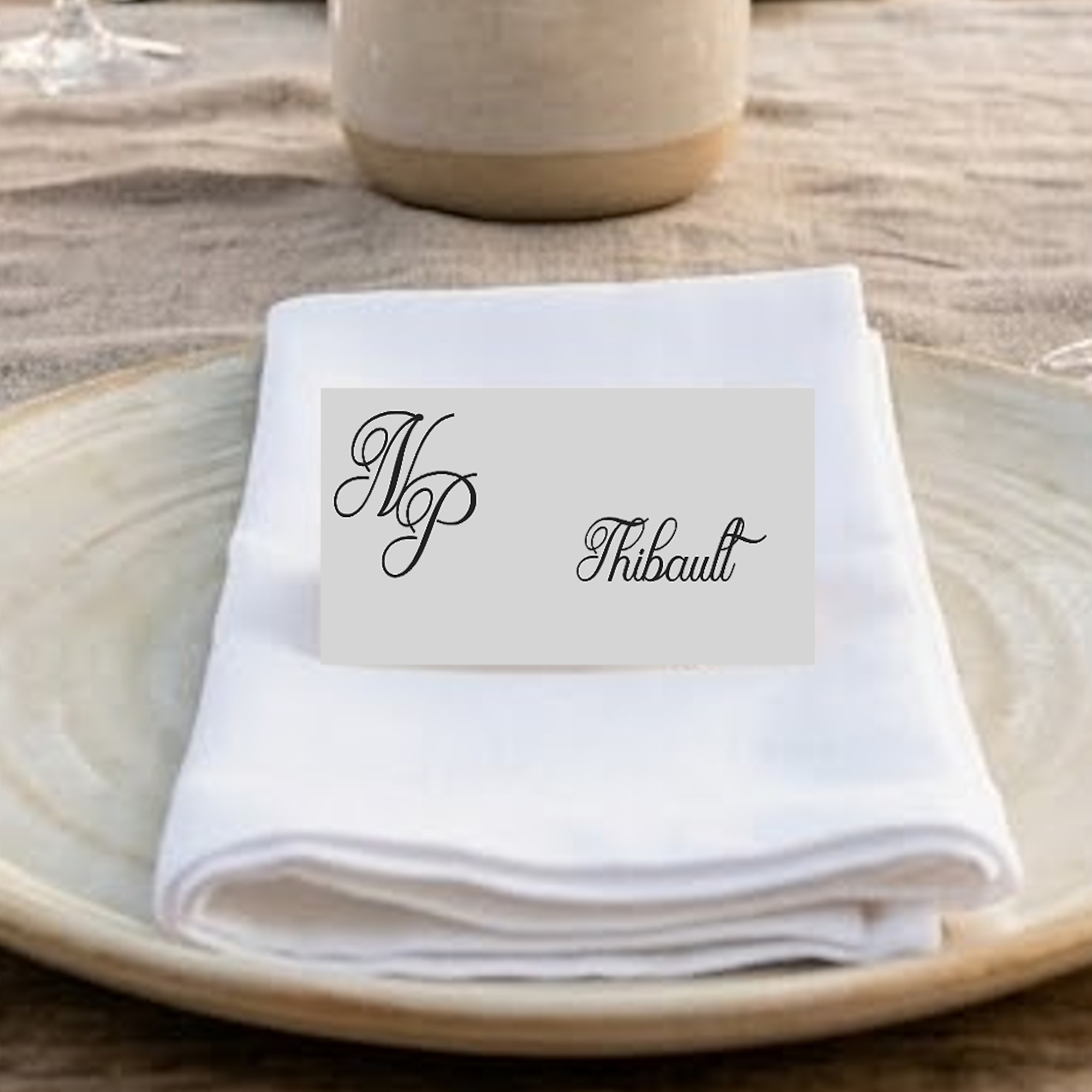 Sublimez votre table avec une touche chic et de poésie : nos marque-places avec leurs initiales style calligraphie, une attention délicate pour des invités privilégiés.