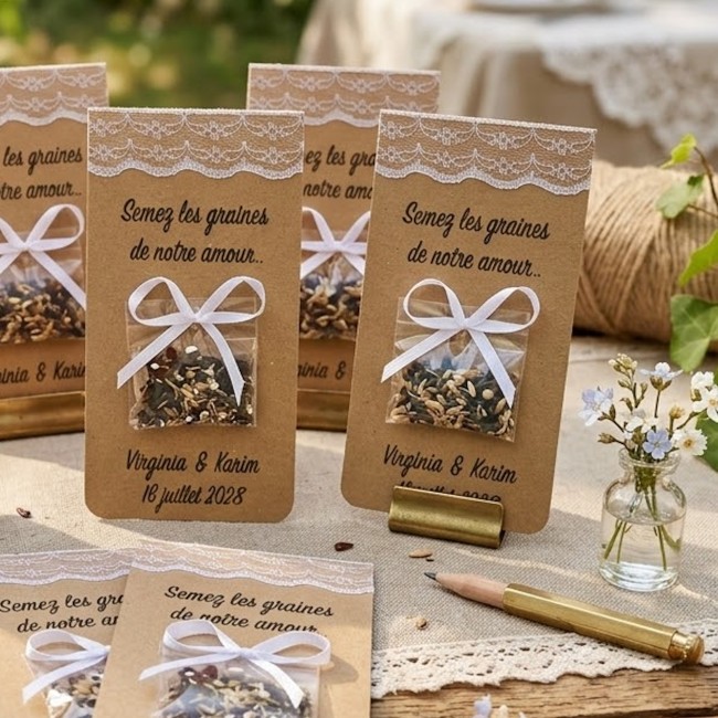 Chaque création peut être adaptée à votre thème : bohème, champêtre, provençal, destination voyage, ou chic moderne. Le détail est soigné, du papier texturé au motif aquarelle, de la touche kraft à la dentelle subtile. Offrez à vos invités une expérience élégante et cohérente, et transformez votre décoration en véritable fil conducteur de votre histoire.