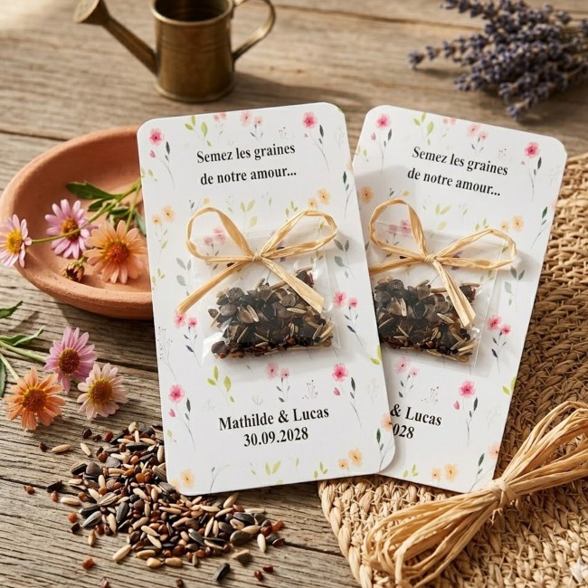 Dans cette collection « Petites fleurs des champs », vous trouverez des créations inspirées de la nature sauvage : invitations, cartes, décorations, confettis/pétales, marque-places ou éléments de papeterie décorative parés de délicats motifs de fleurs sauvages — coquelicots, marguerites, bleuets… Ces pièces évoquent la simplicité charmante des prairies fleuries, l’innocence d’un été à la campagne, et apportent une touche romantique, légère et naturelle à vos événements : mariage champêtre, baptême, garden-party ou fête en plein air. L’ensemble respire la douceur, la fraîcheur et l’authenticité — idéal pour célébrer vos moments précieux dans une ambiance chaleureuse, poétique et naturelle.